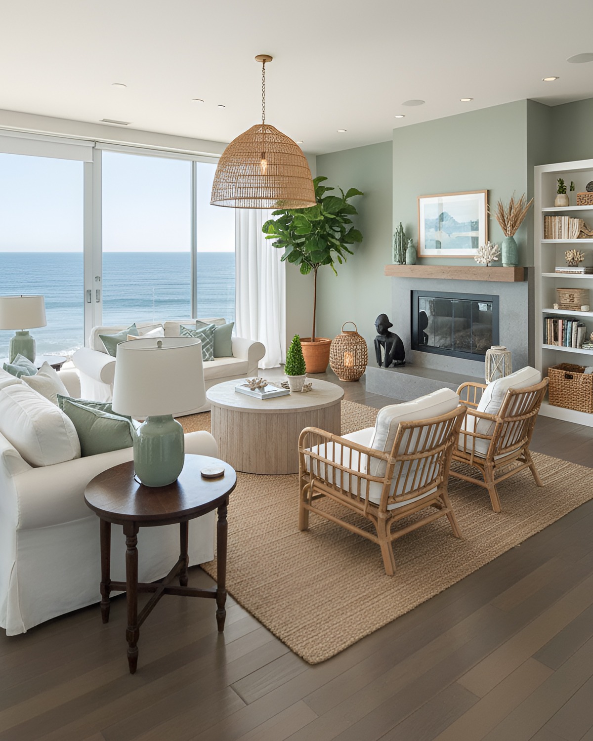 What if one color could make your beach house living room feel fresh, calm, and beautifully pulled together? That is the charm of sage green. It feels soft like sea grass, light like coastal air, and warm enough to make a room feel like home. When you pair it with sandy neutrals, woven textures, and breezy fabrics, the whole space starts to glow. So, if you want a living room that feels relaxed, stylish, and easy to love, this look is full of ideas worth saving.