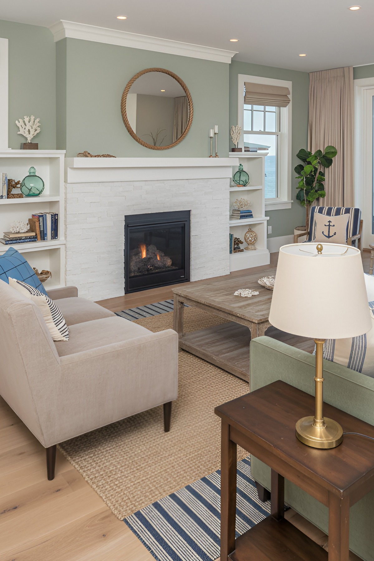A sage green beach house living room feels peaceful without looking plain. It brings in color, but in a quiet and graceful way. Add soft white, natural wood, linen, jute, and a few subtle coastal touches, and the room feels bright, layered, and welcoming. Whether you want a full makeover or just a few simple updates, this color story can help you create a space that feels fresh every single day.