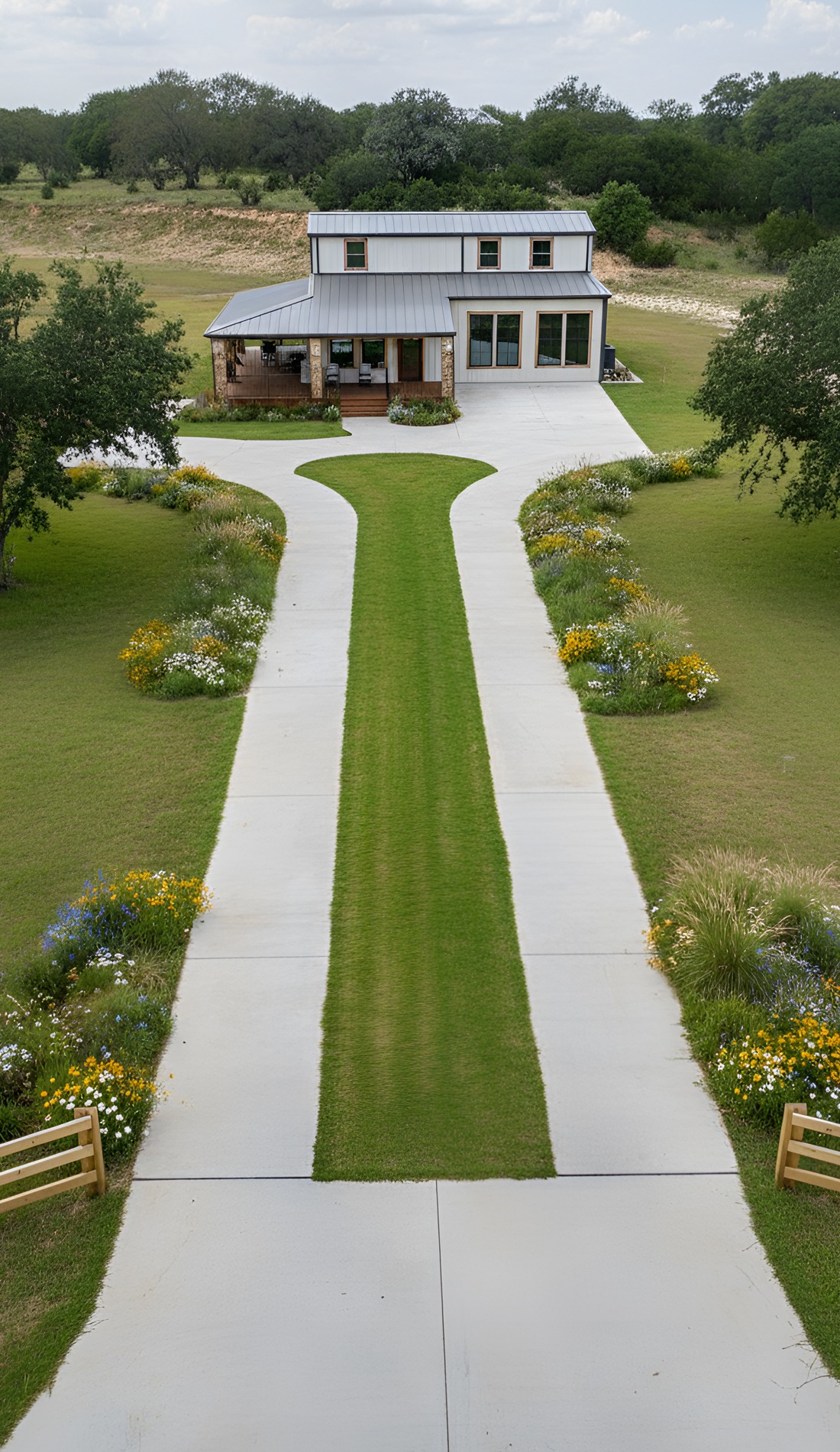 7. Driveway with Grass Strip Center for Farmhouse Appeal