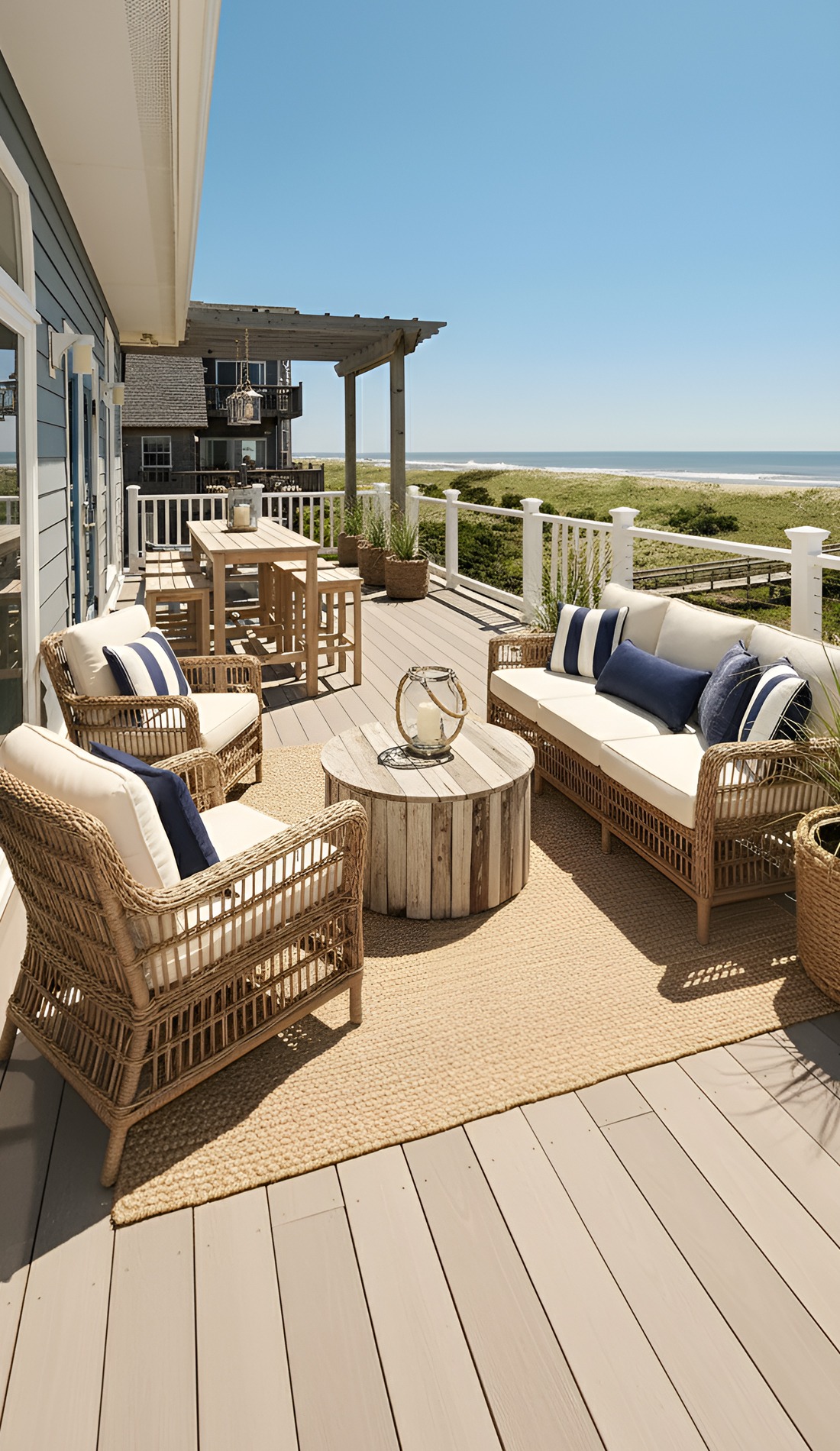 A beach house deck should have texture from every angle. That is what keeps it from feeling flat.