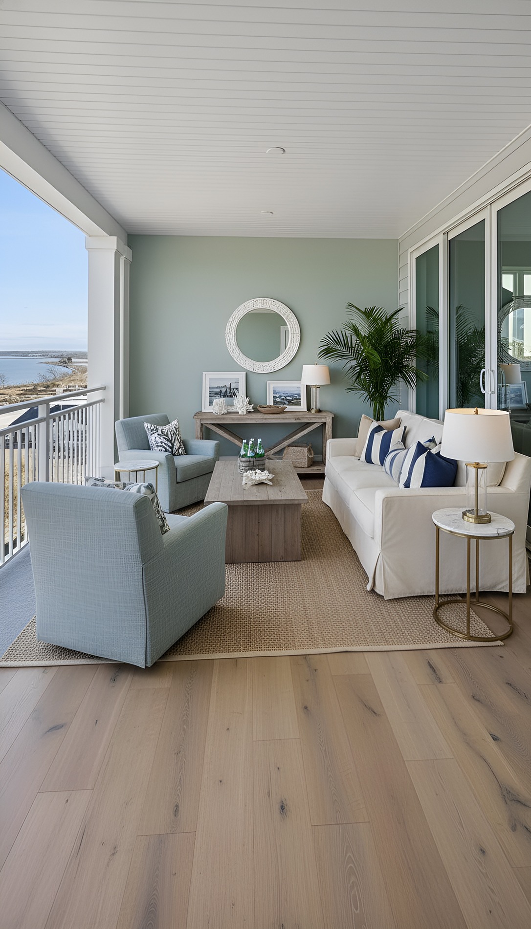This is your first chance to create that beach house feeling. A beautiful doormat, matching planters, a relaxed wreath, and good lighting can make the entry feel warm and cared for. Even if the porch is small, this moment can still have a big impact.