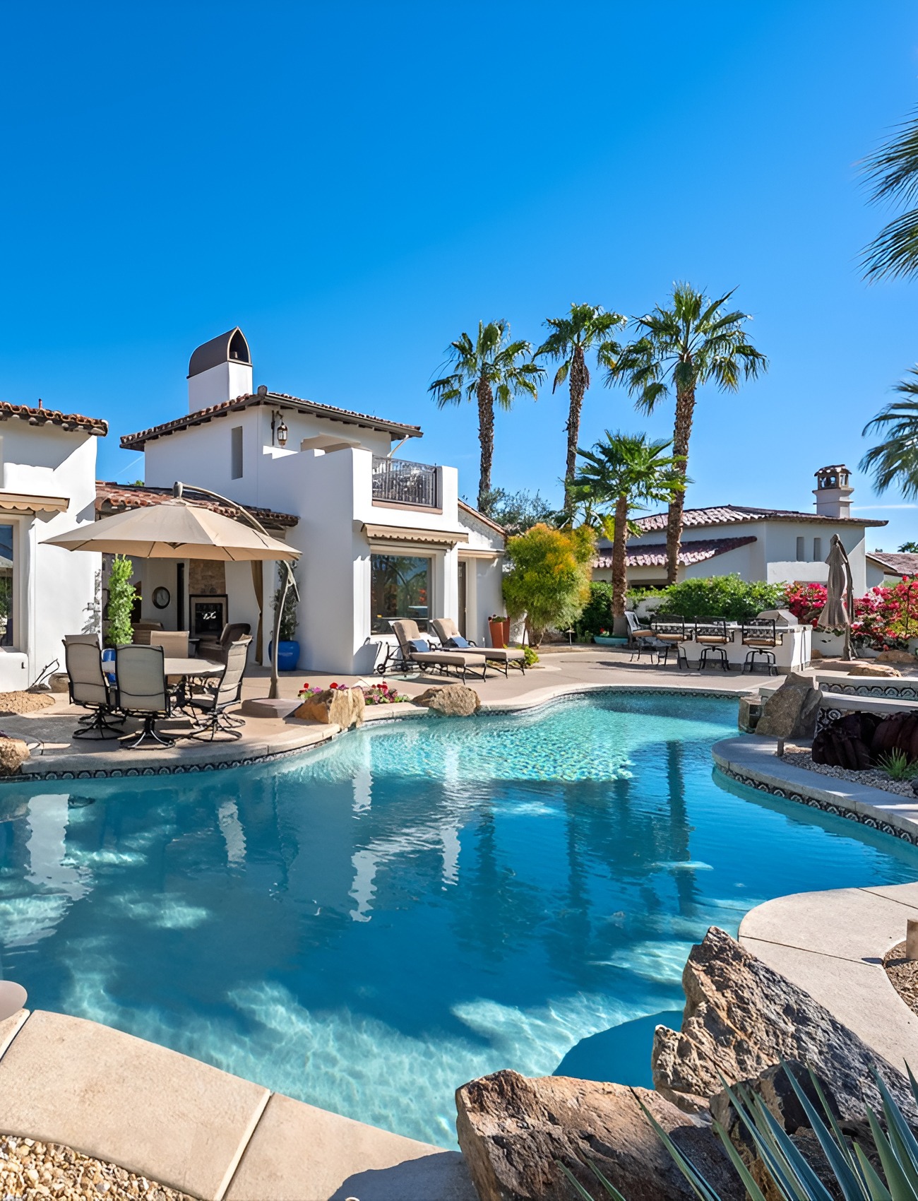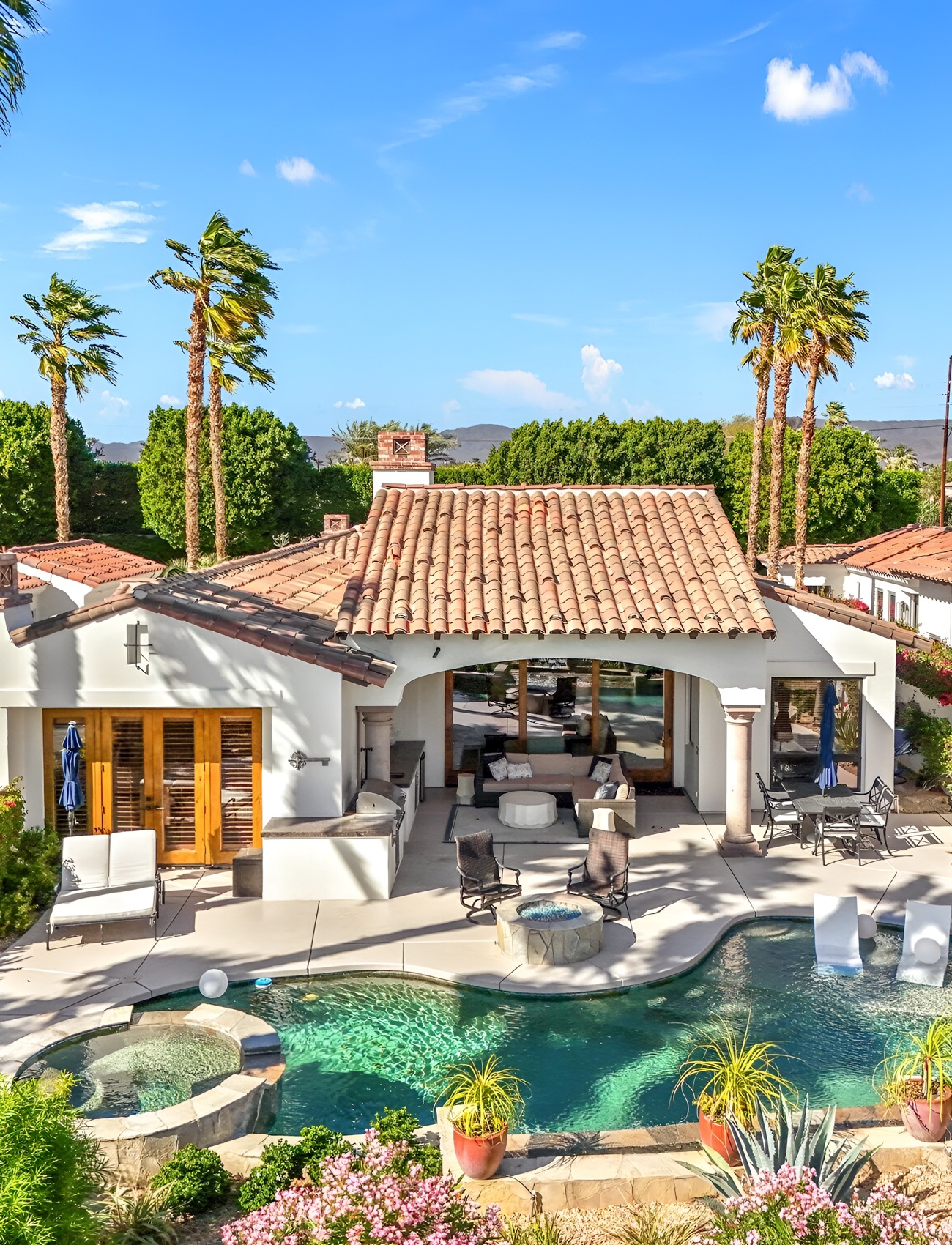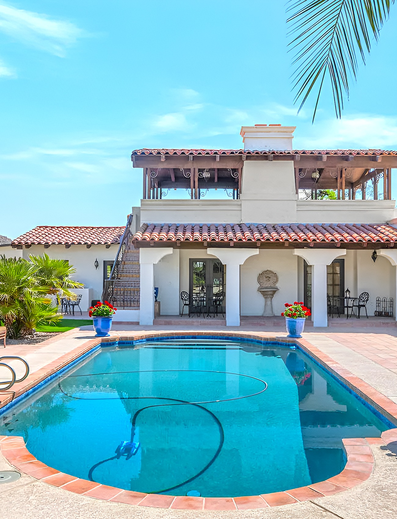 A classic hacienda pool often feels more organic than sharp and sleek. Instead of a severe rectangle, think gentle curves, rounded edges, or a pool shape that feels tucked into the landscape.