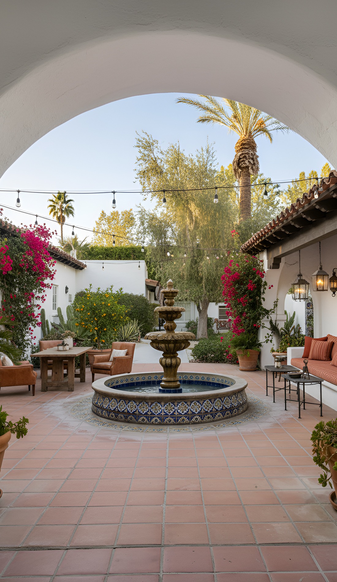 Arches can completely change the feel of a courtyard. They create softness and rhythm. They also add that classic Spanish and Hacienda look people love so much. Even one arched opening can make the whole space feel more elegant.