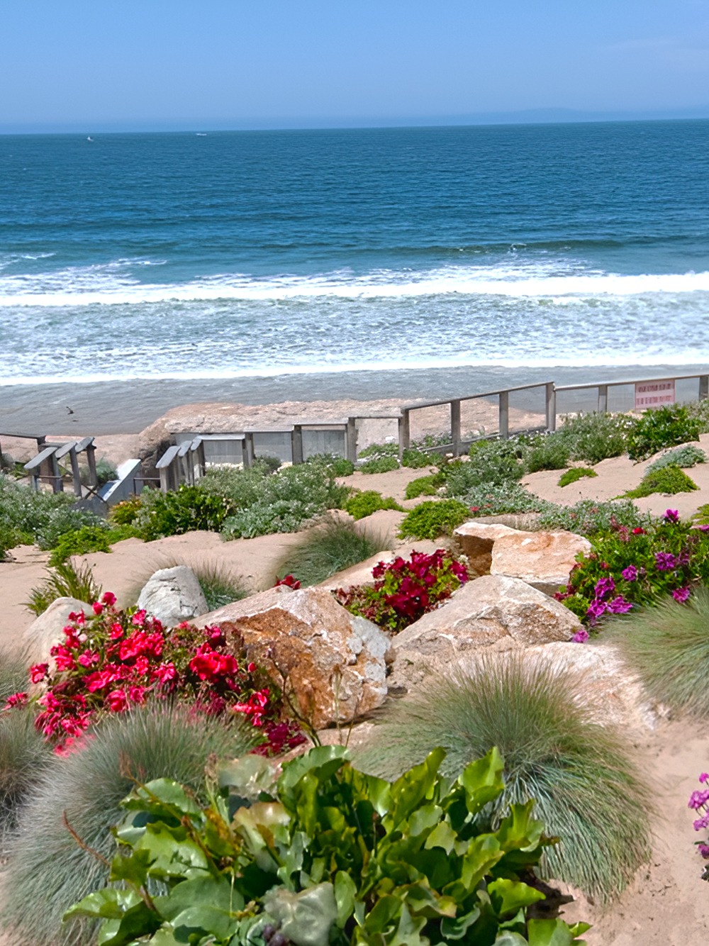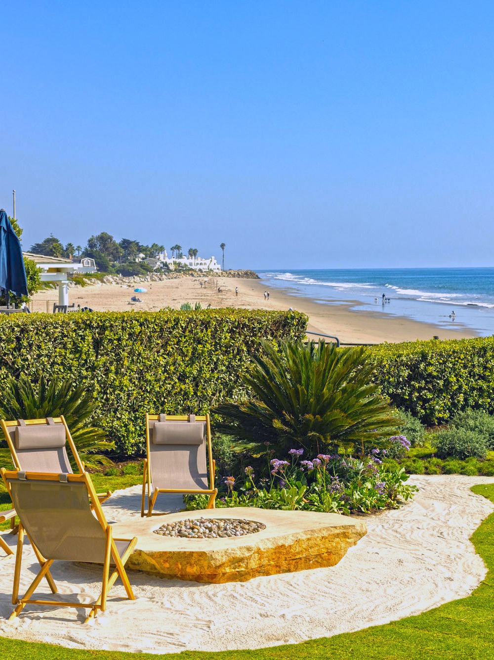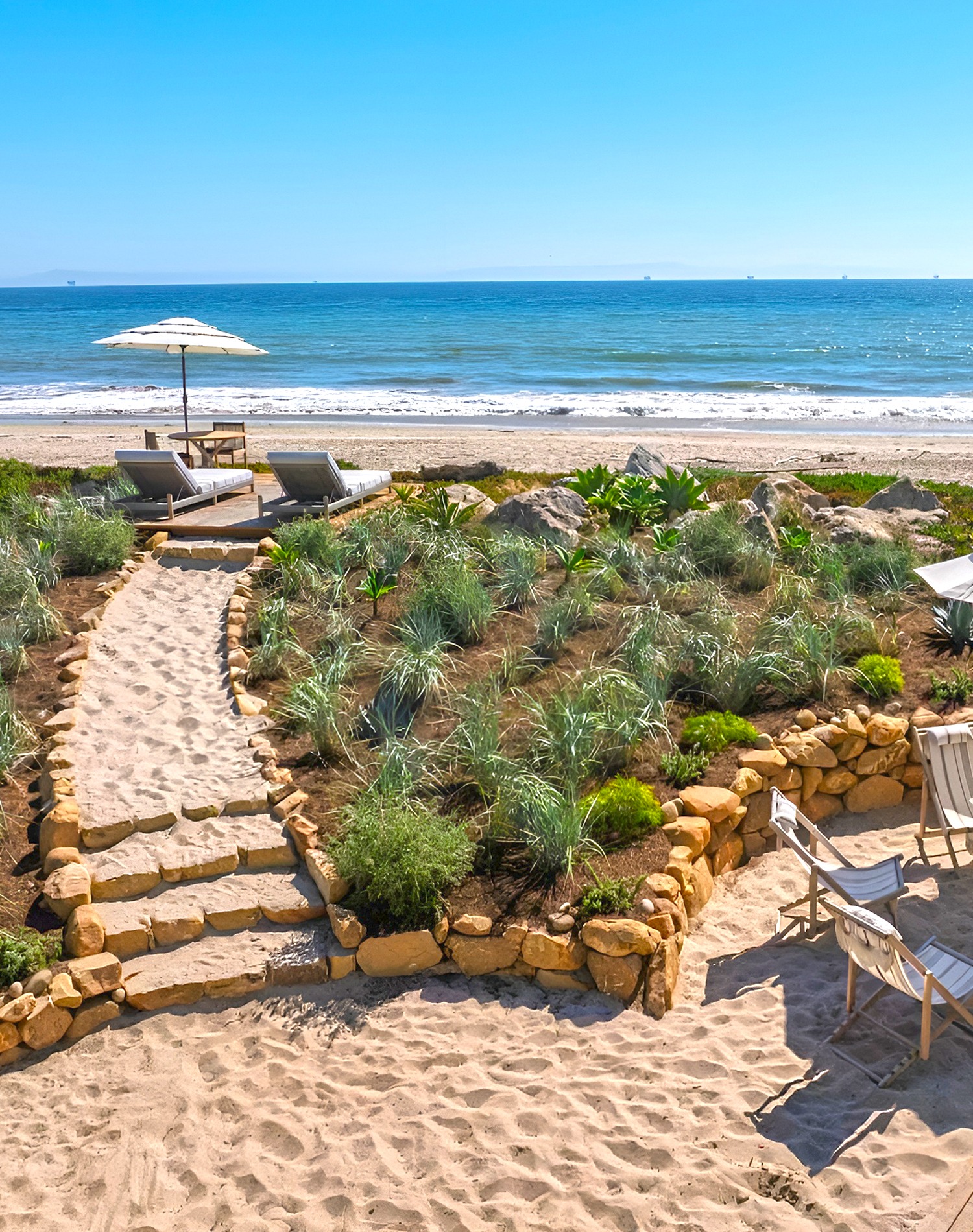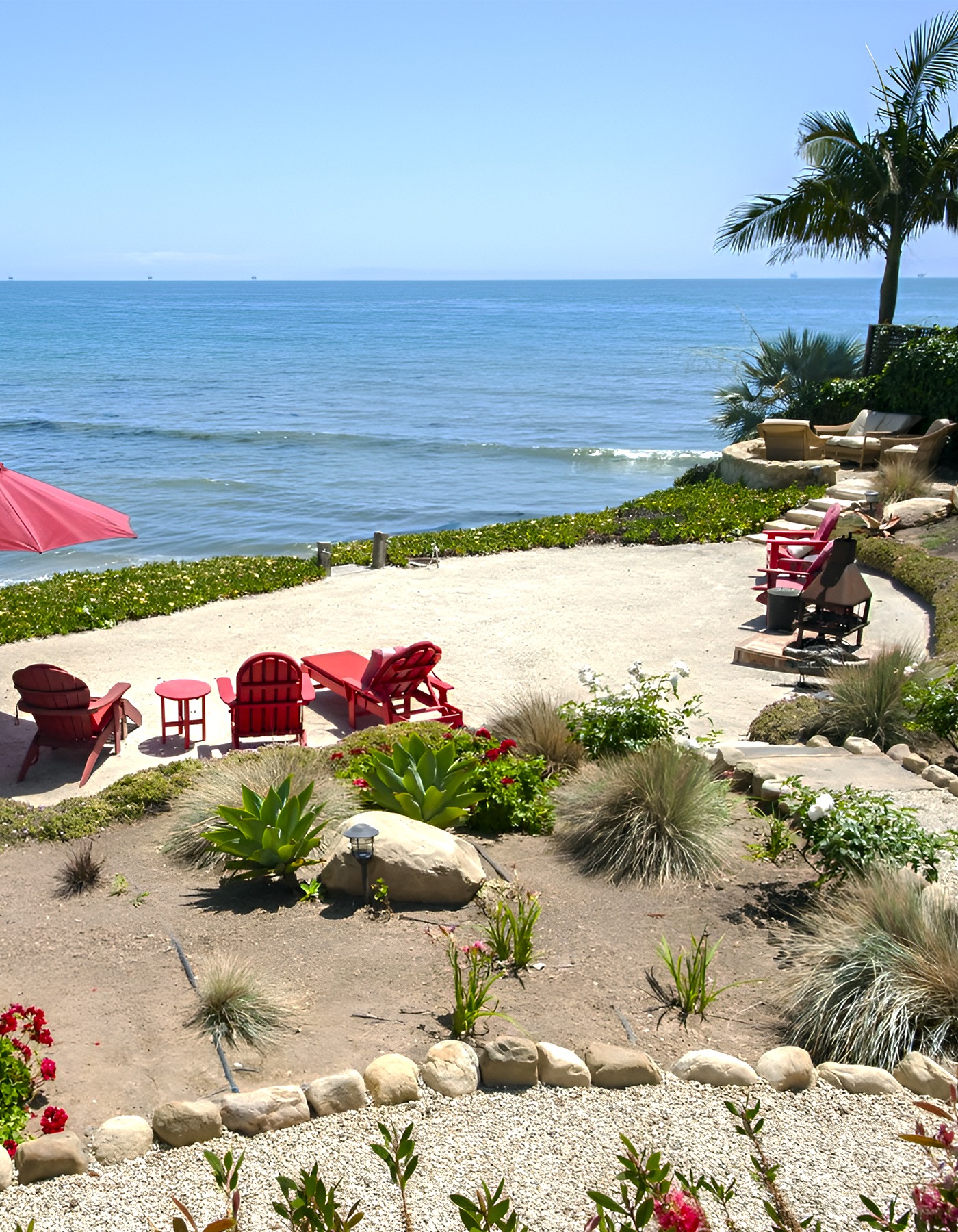 - Gentle transitions from patio to garden to beach access