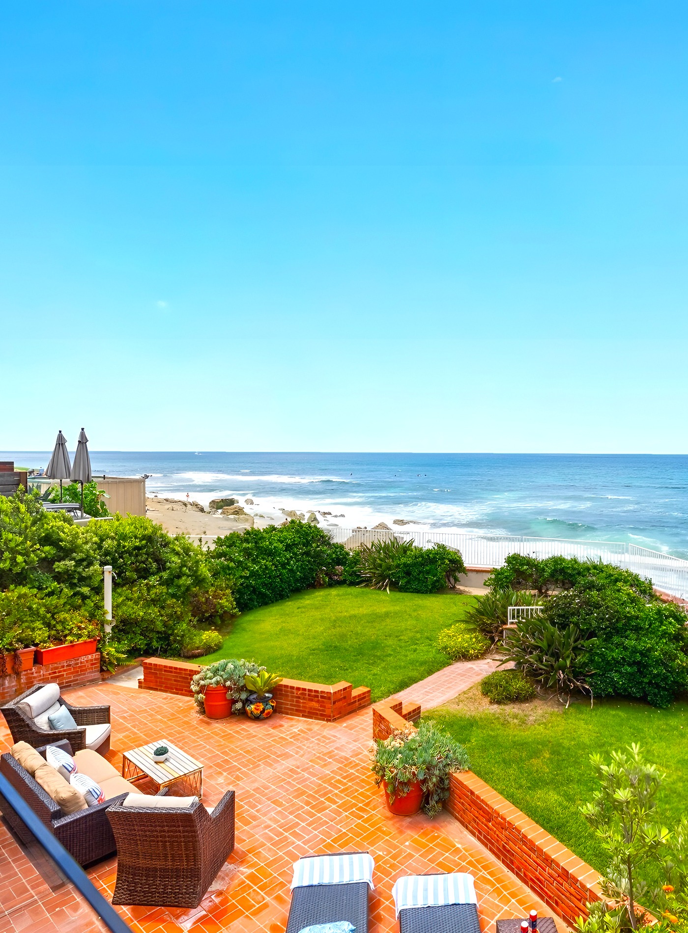 7. Brick Patio and Lawn With a Strong Ocean Edge