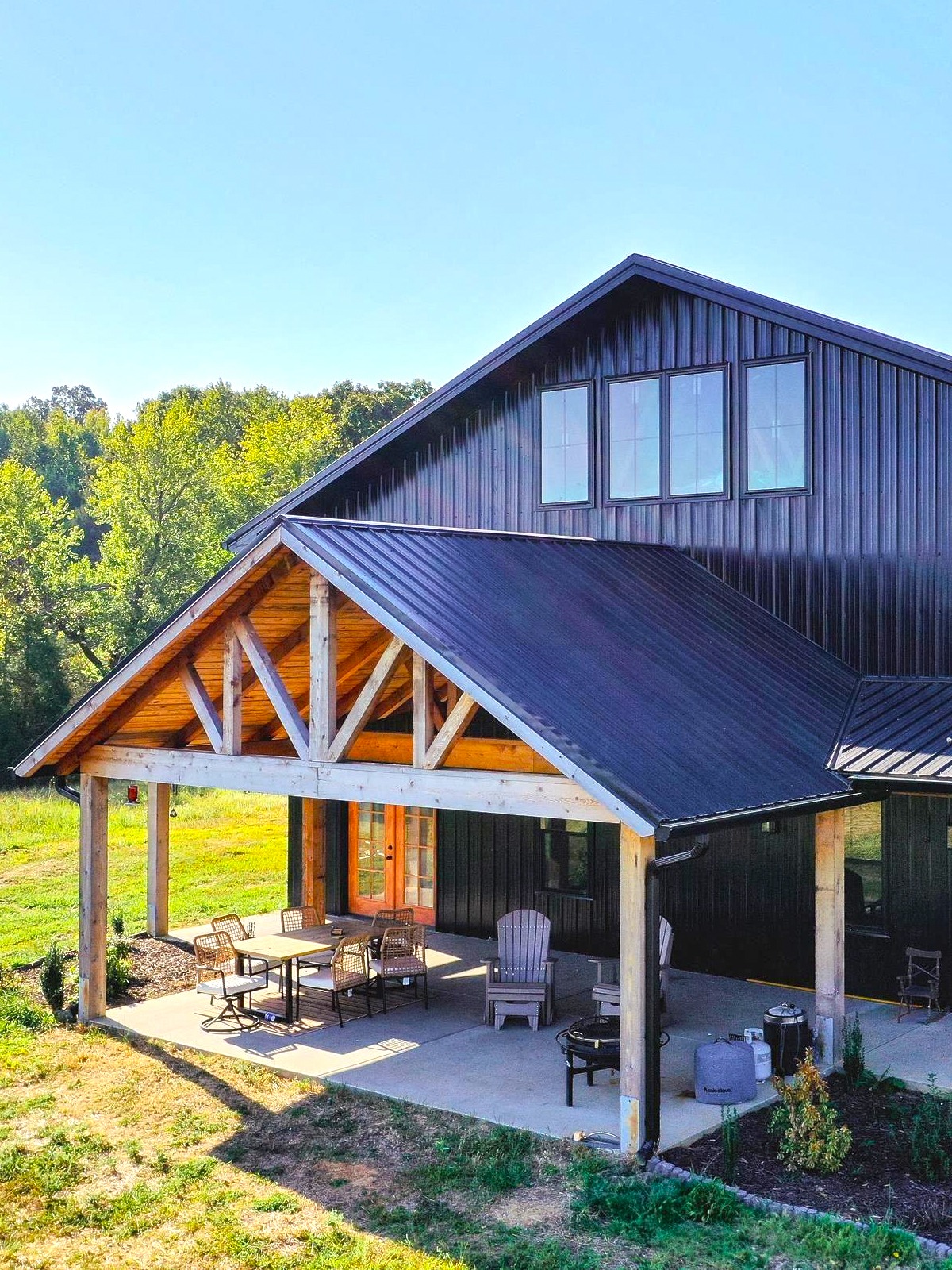 This space works especially well in a barndominium because the large structure often opens easily to the outdoors. Add a grill area, dining table, lounge seating, and maybe a fireplace or TV, and you have a true extension of the house.