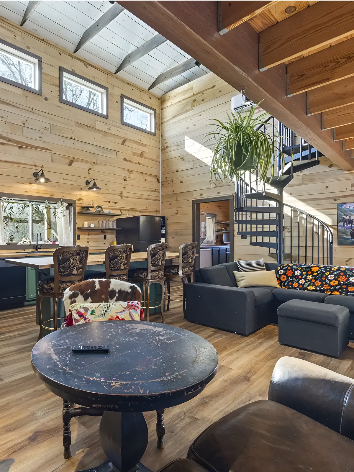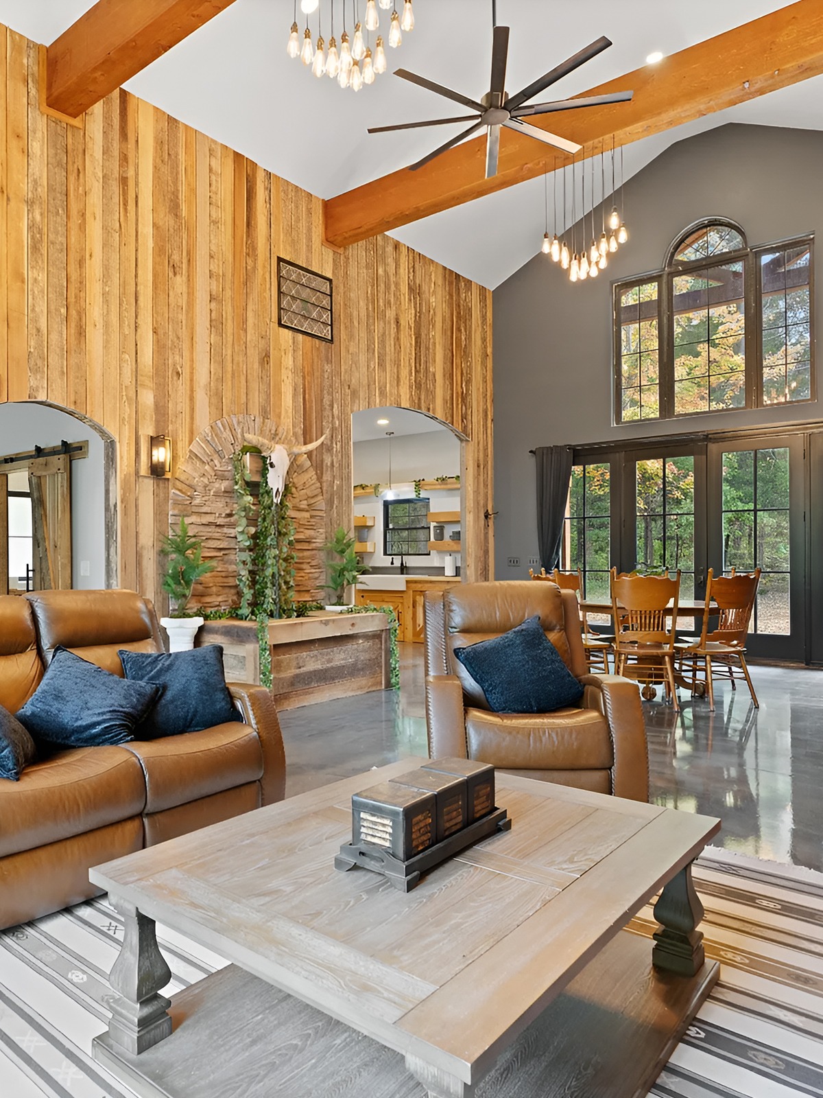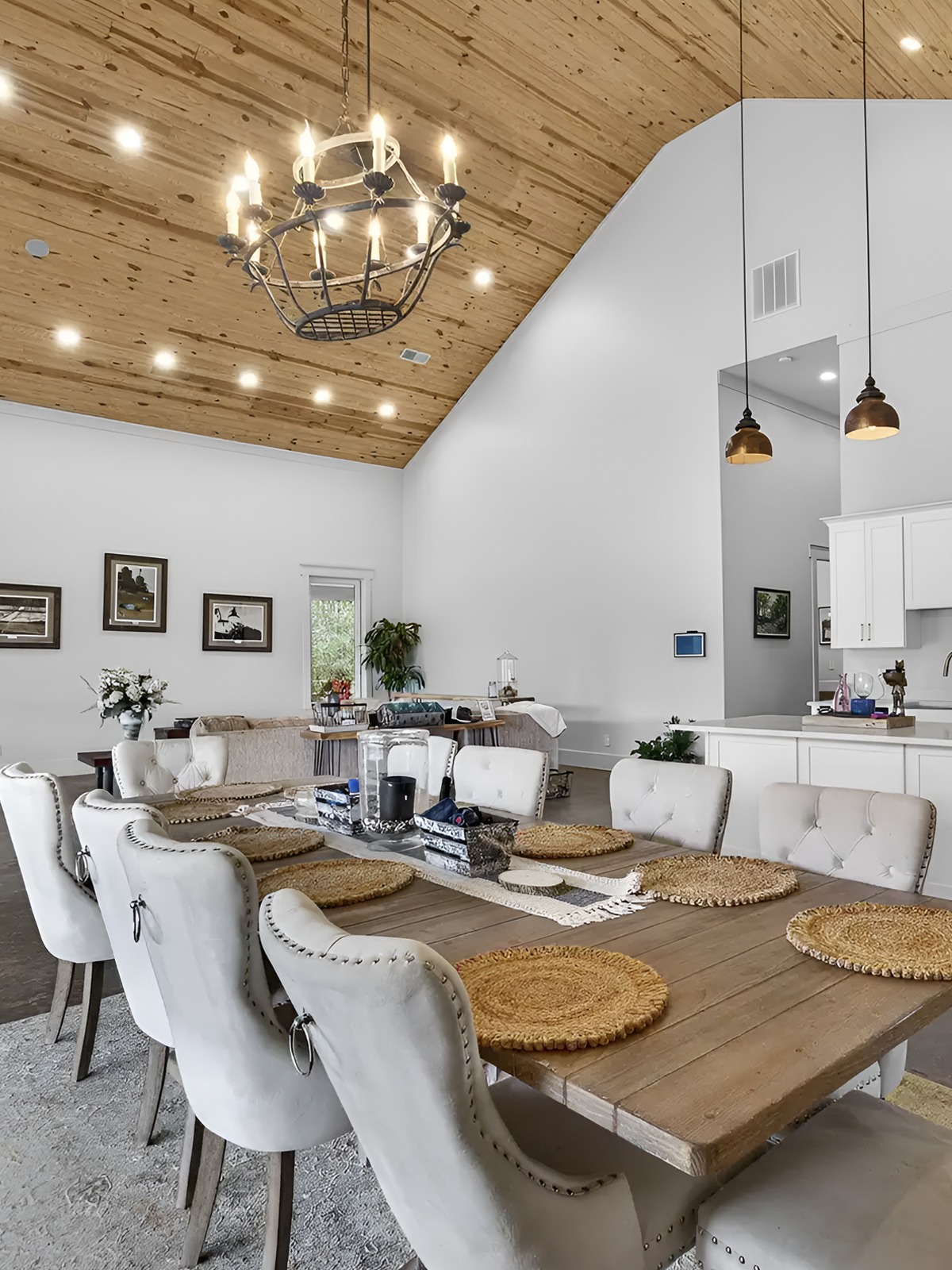 In open barndominiums, the dining area often sits between the kitchen and living room. That means it needs enough character to hold its own.