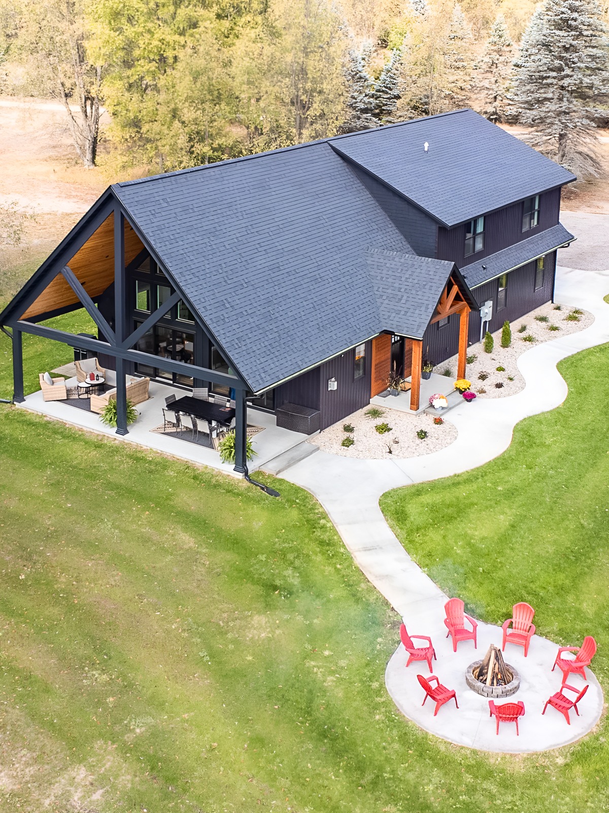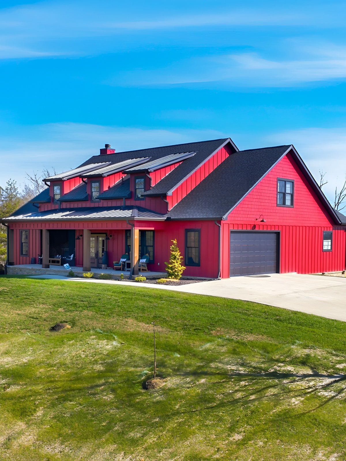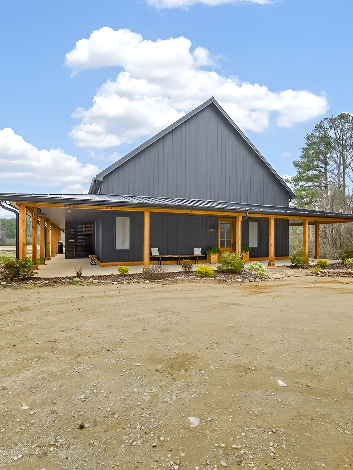 Barndominiums often have bold, clean exteriors. Landscaping helps soften that strength and make the home feel settled into its site.