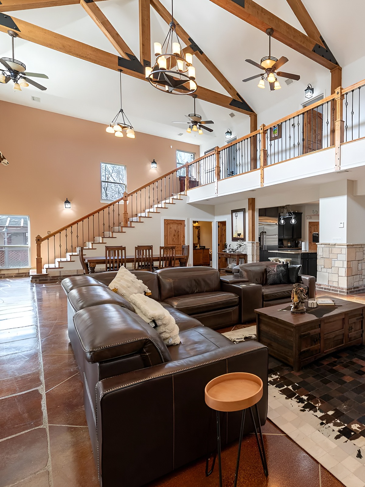 A barndominium can look stunning in photos, but it still needs to feel good in real life. One of the best ways to make a large room feel warm is to layer texture.