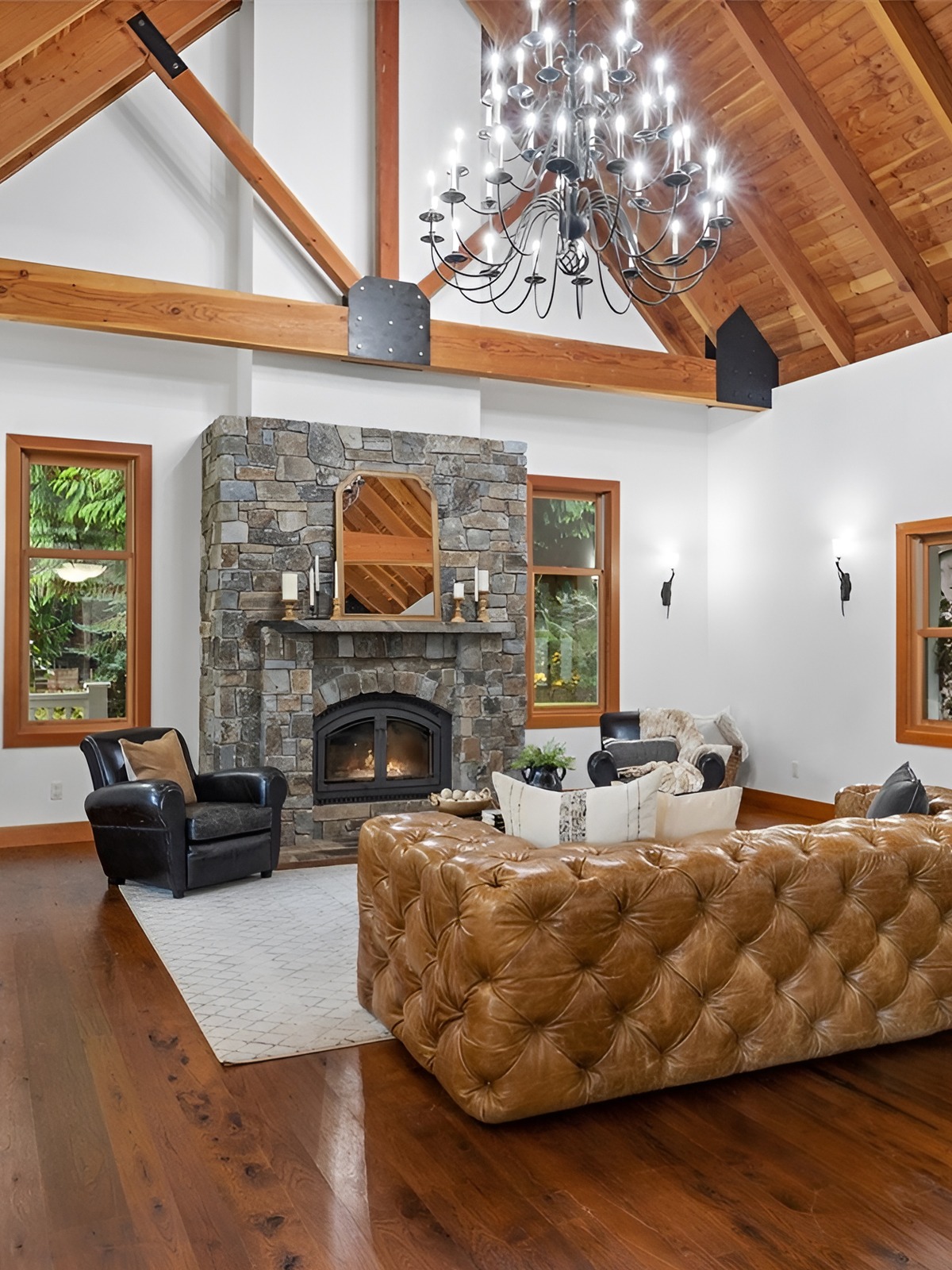 Let the architecture speak. Let the beams, windows, ceilings, and materials do the heavy lifting. Then add decor that supports the mood rather than competes with it.