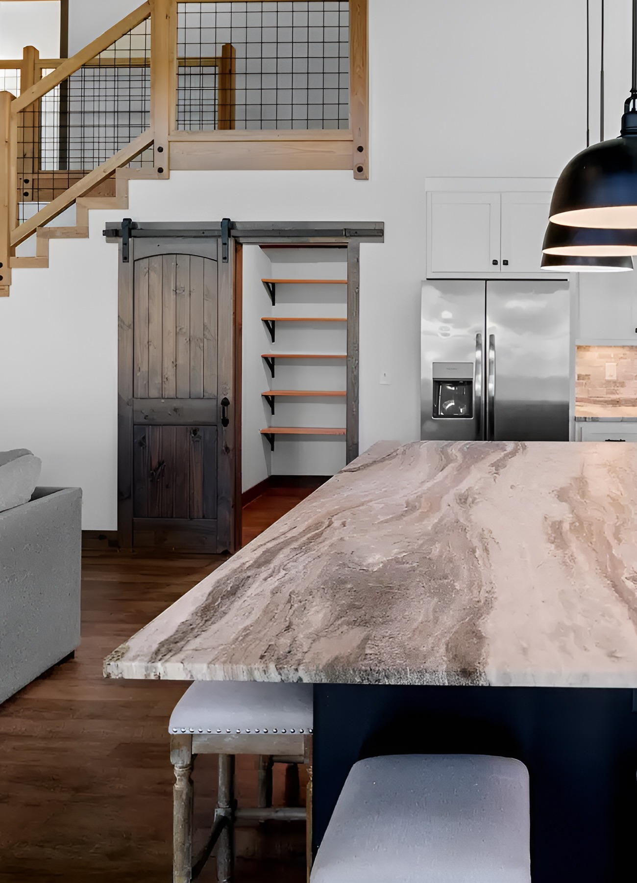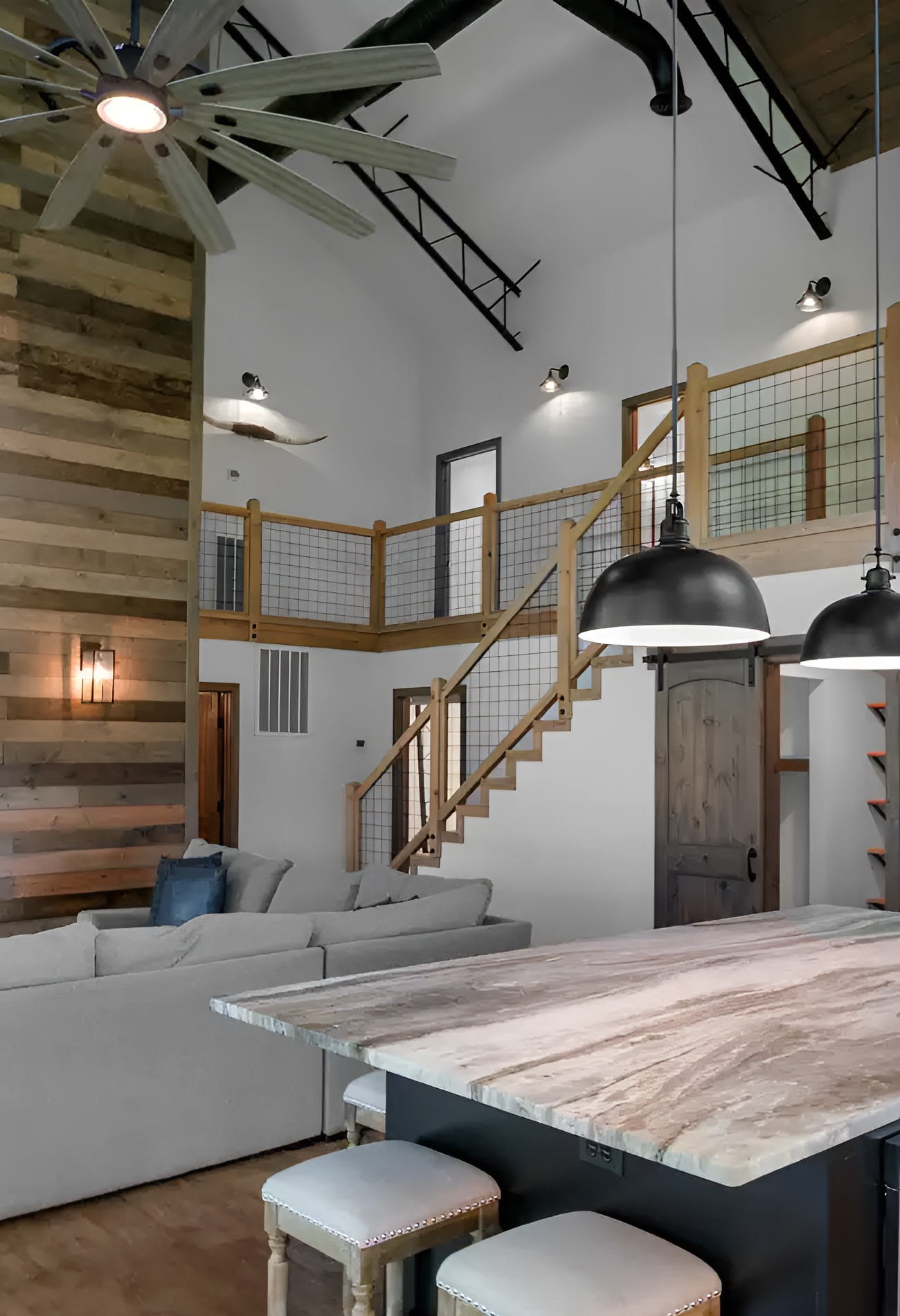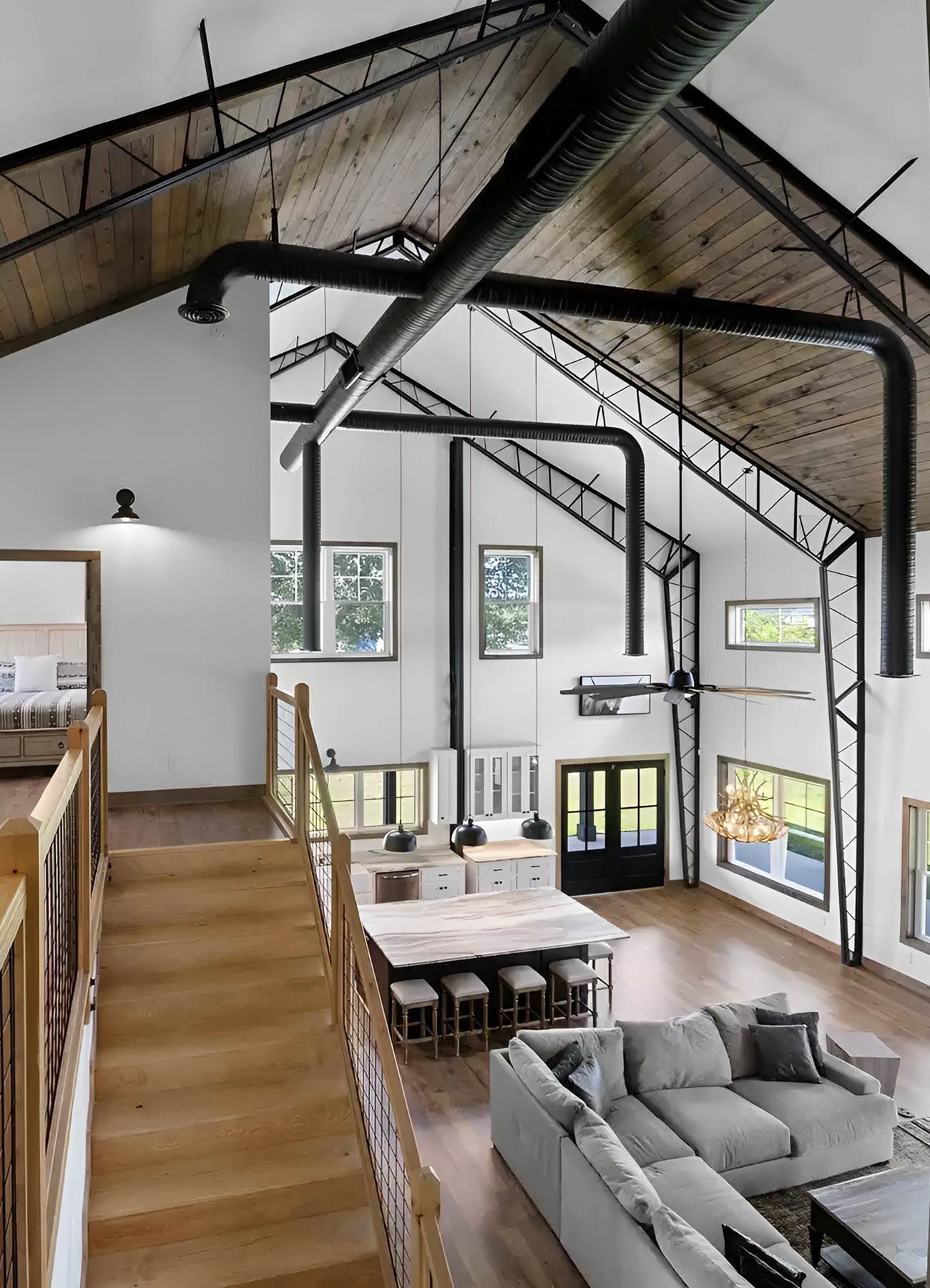 This style works because it does not fight the architecture. It lets the barn-style bones shine.