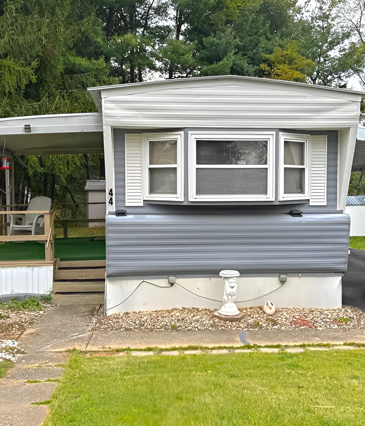 Then, add one strong detail. It could be white skirting, dark shutters, a cute window awning, a stone-look base, or a low-care garden bed. Together, these pieces help your single wide feel more like a custom home.