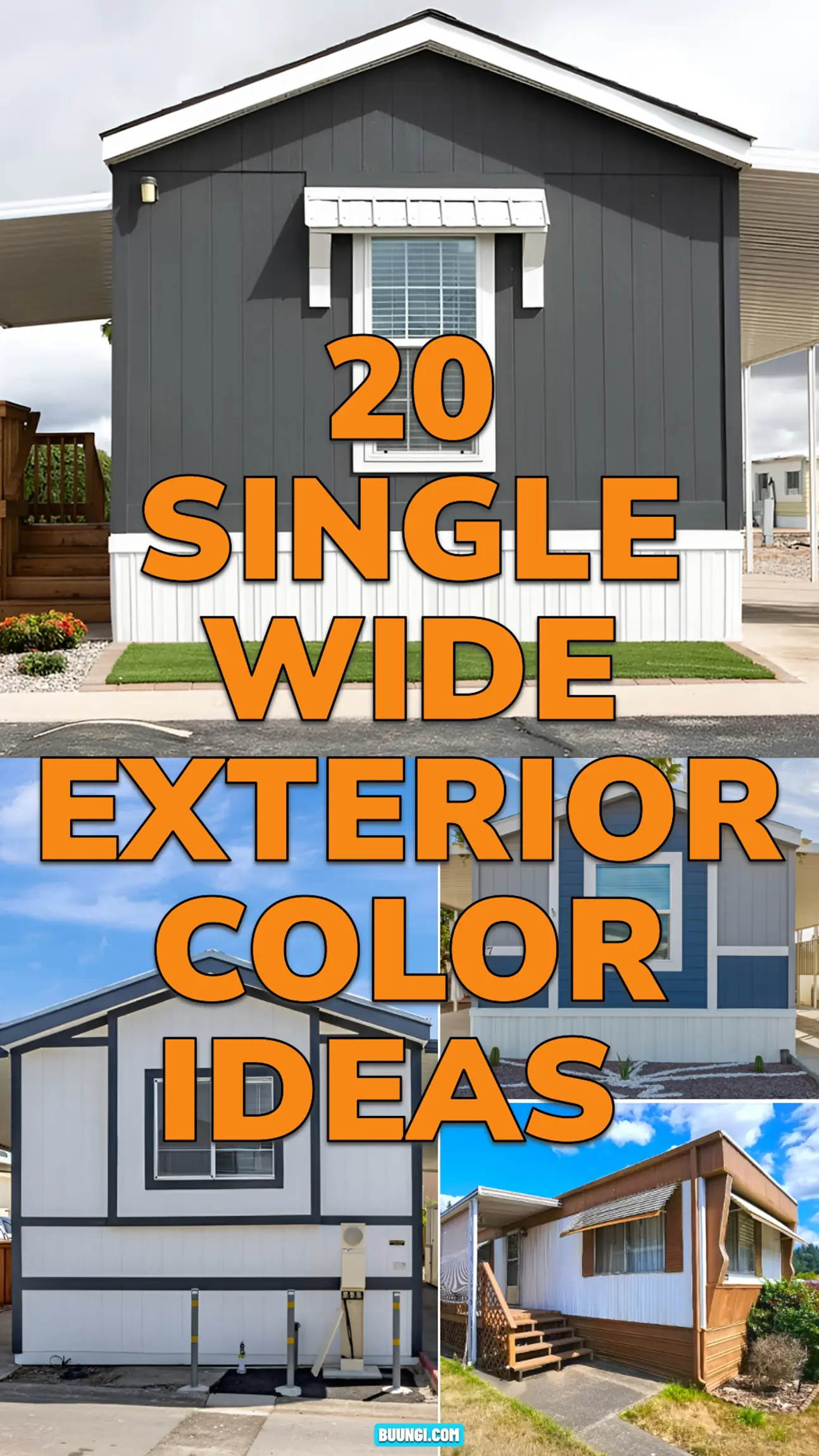 These single wide exterior color ideas show how much style you can create with soft neutrals, bold charcoal, warm tans, cool blues, and classic white trim.
