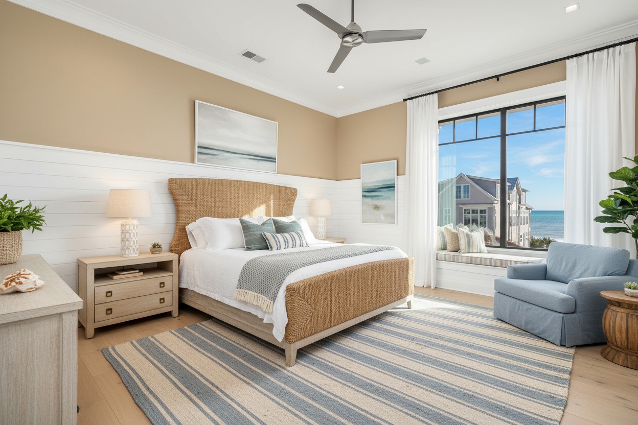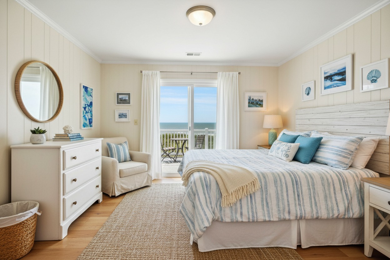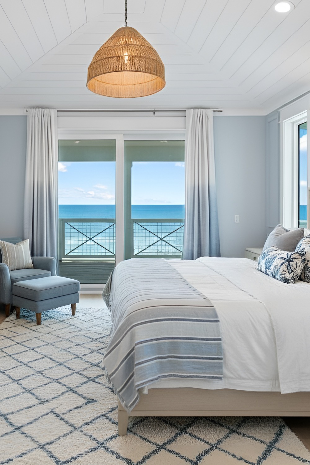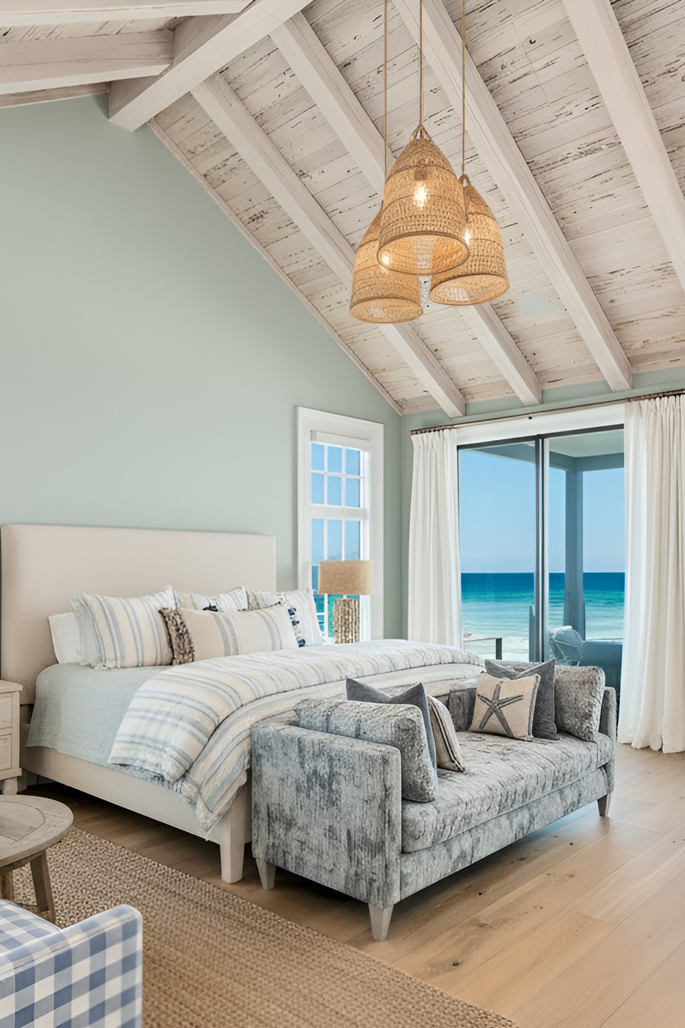If you love a more playful beach vibe, add stripes, coral accents, or a sunny yellow pillow. Just keep the base colors light. That’s what makes the room feel like a breath of salty air.