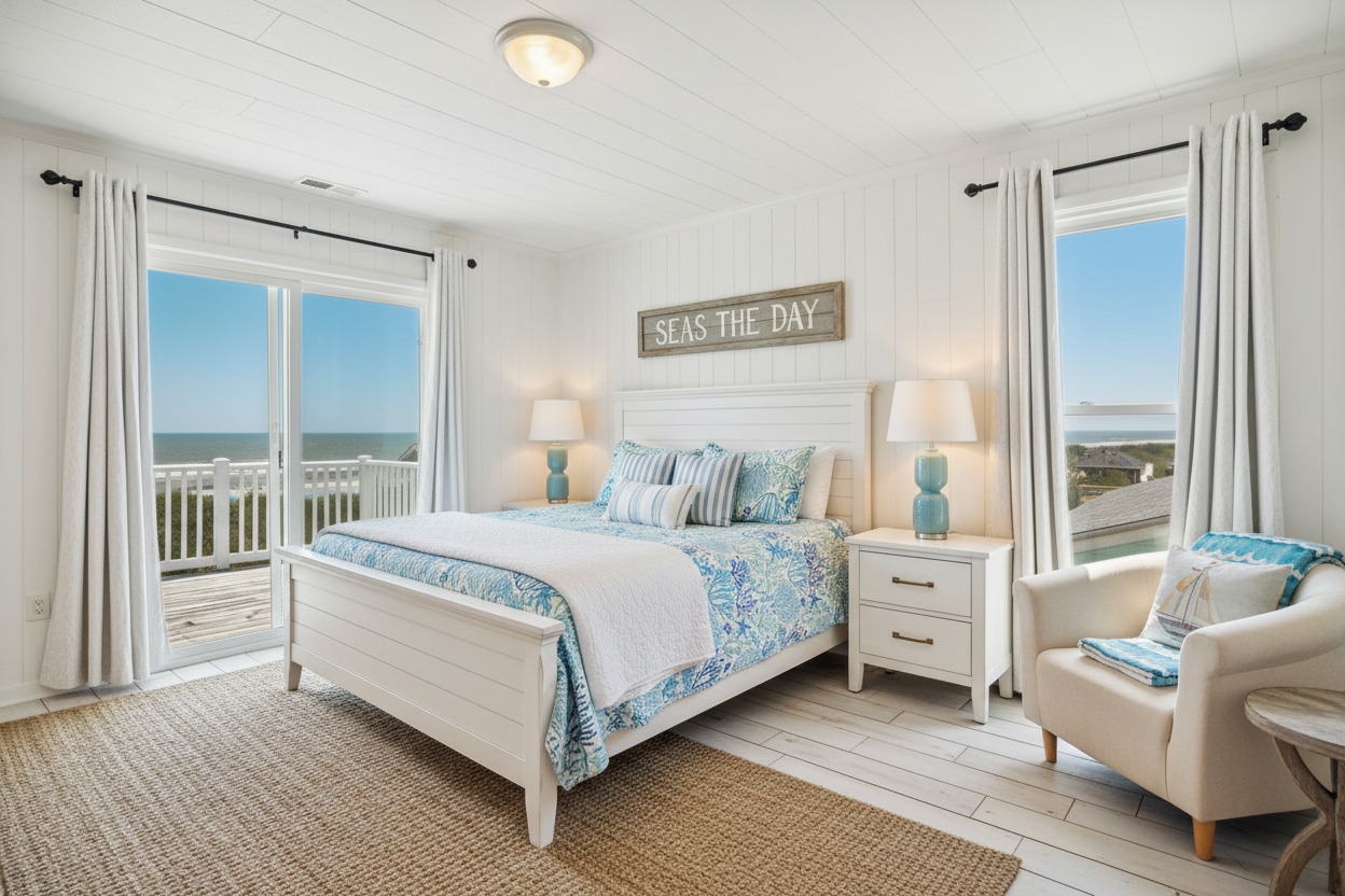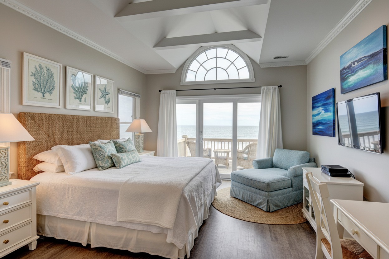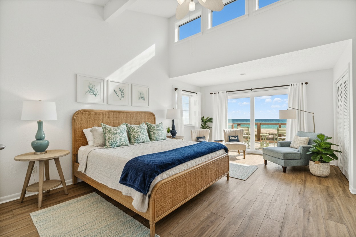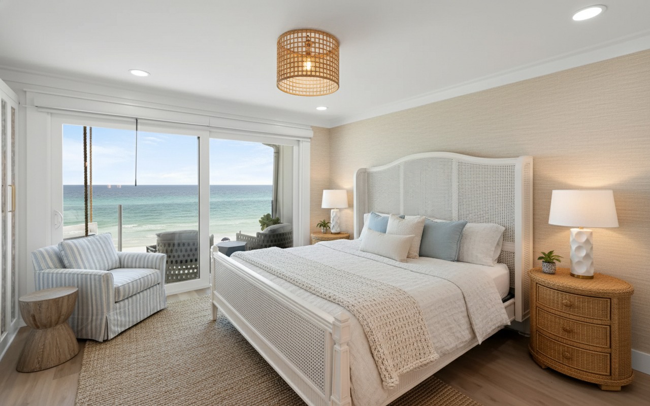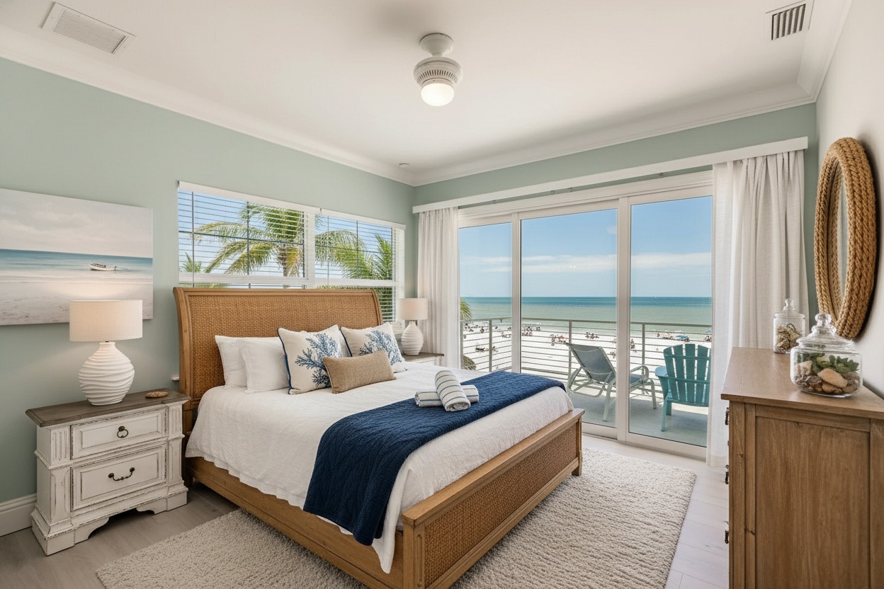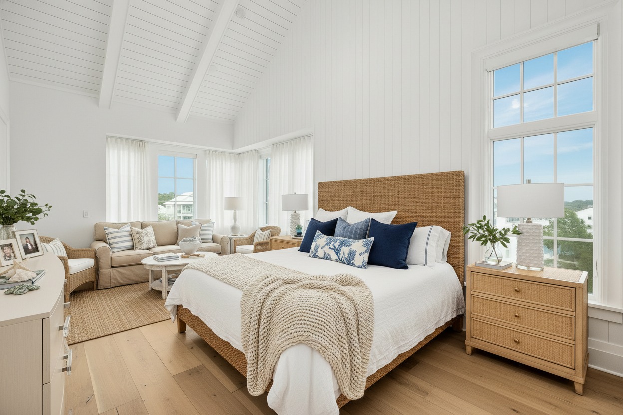 Imagine this. You wake up. The room feels bright, calm, and clean. The bed looks like a soft cloud. And everything has that easy “beach house” vibe—without a single seashell lamp in sight.