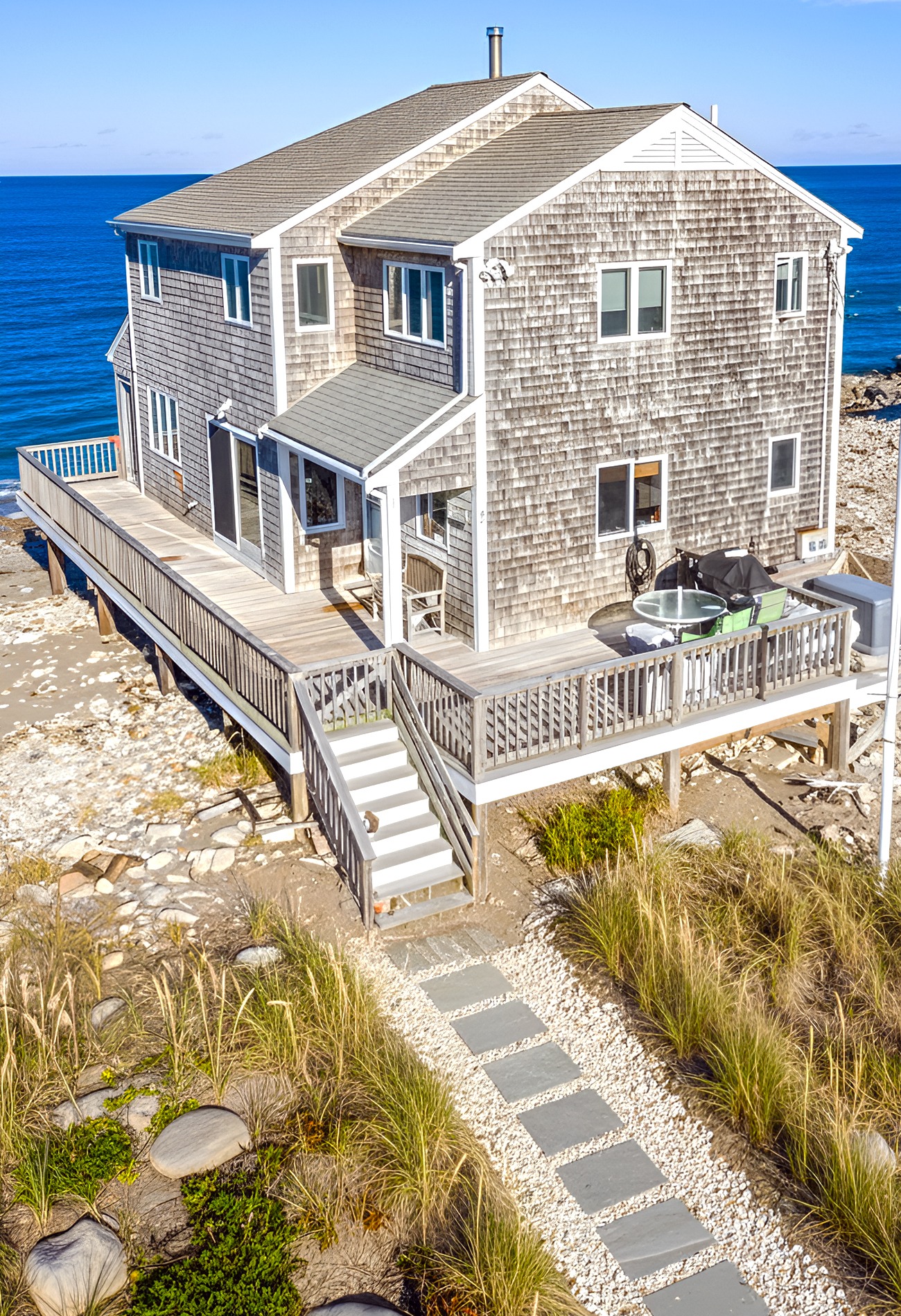 Weathered gray also works well with cedar shingles. Over time, natural cedar turns gray, which gives the home a timeless beach style.