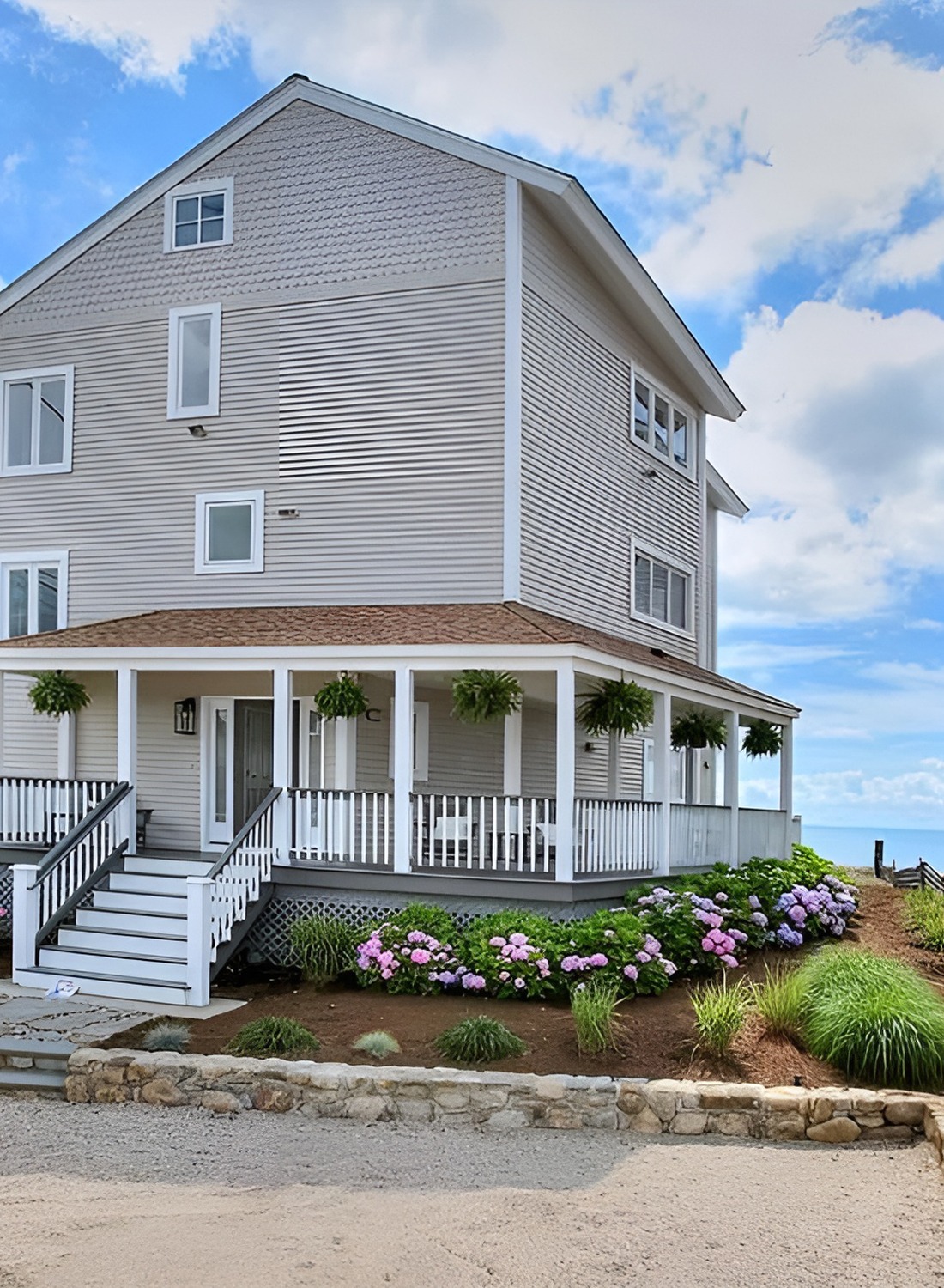 Warm ivory is a great choice for coastal homes with classic details. It makes trim, columns, and porch railings look elegant.