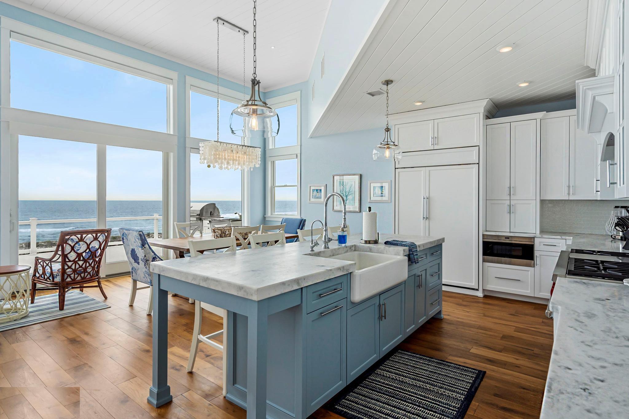 11. Ocean-View Island Table That Seats a Crowd