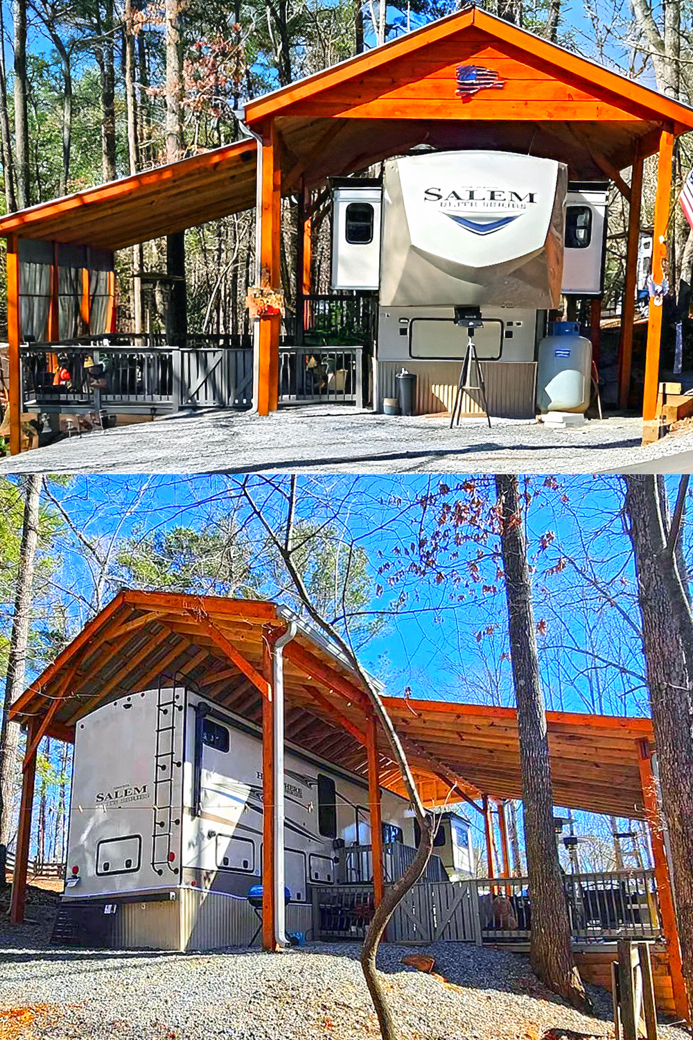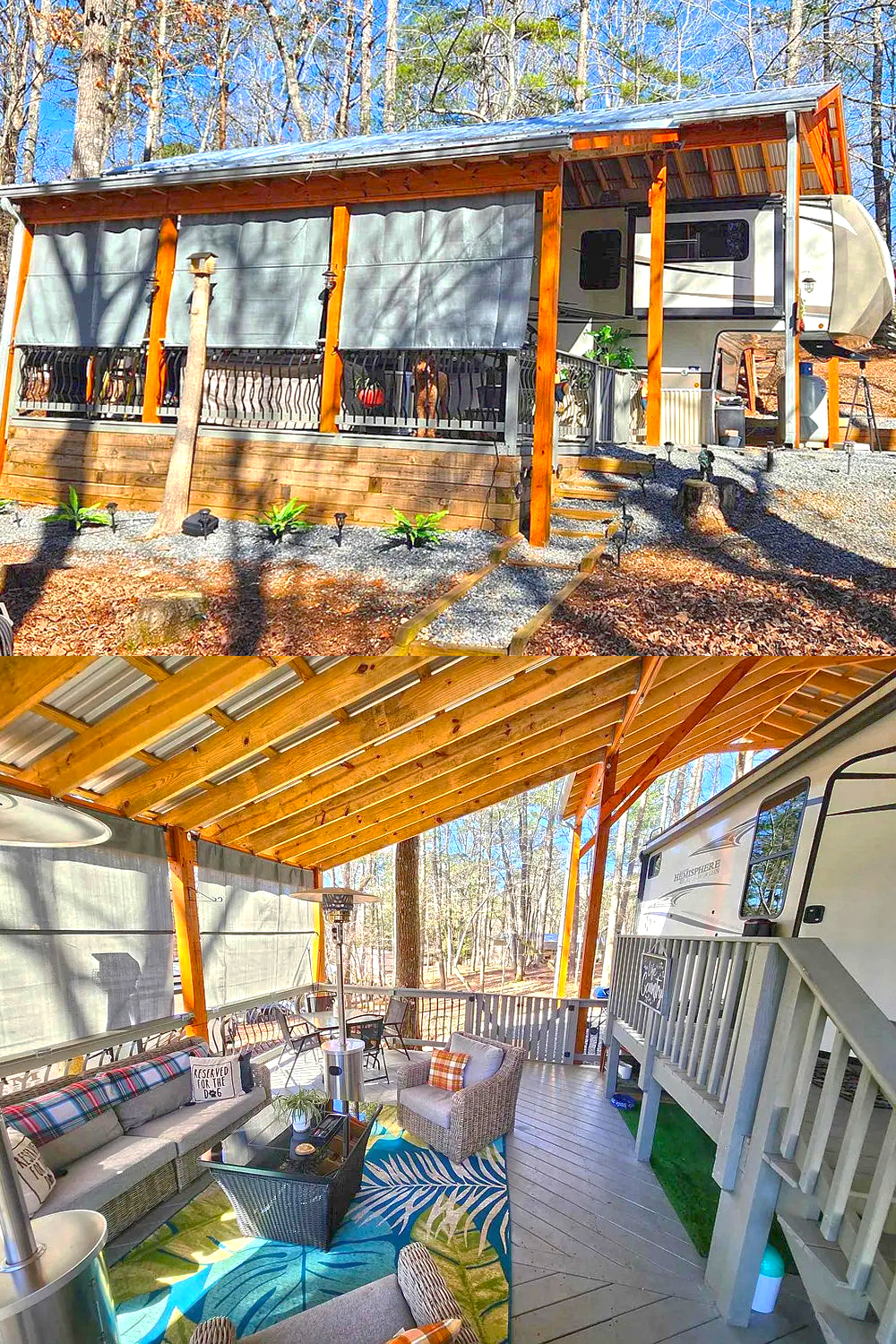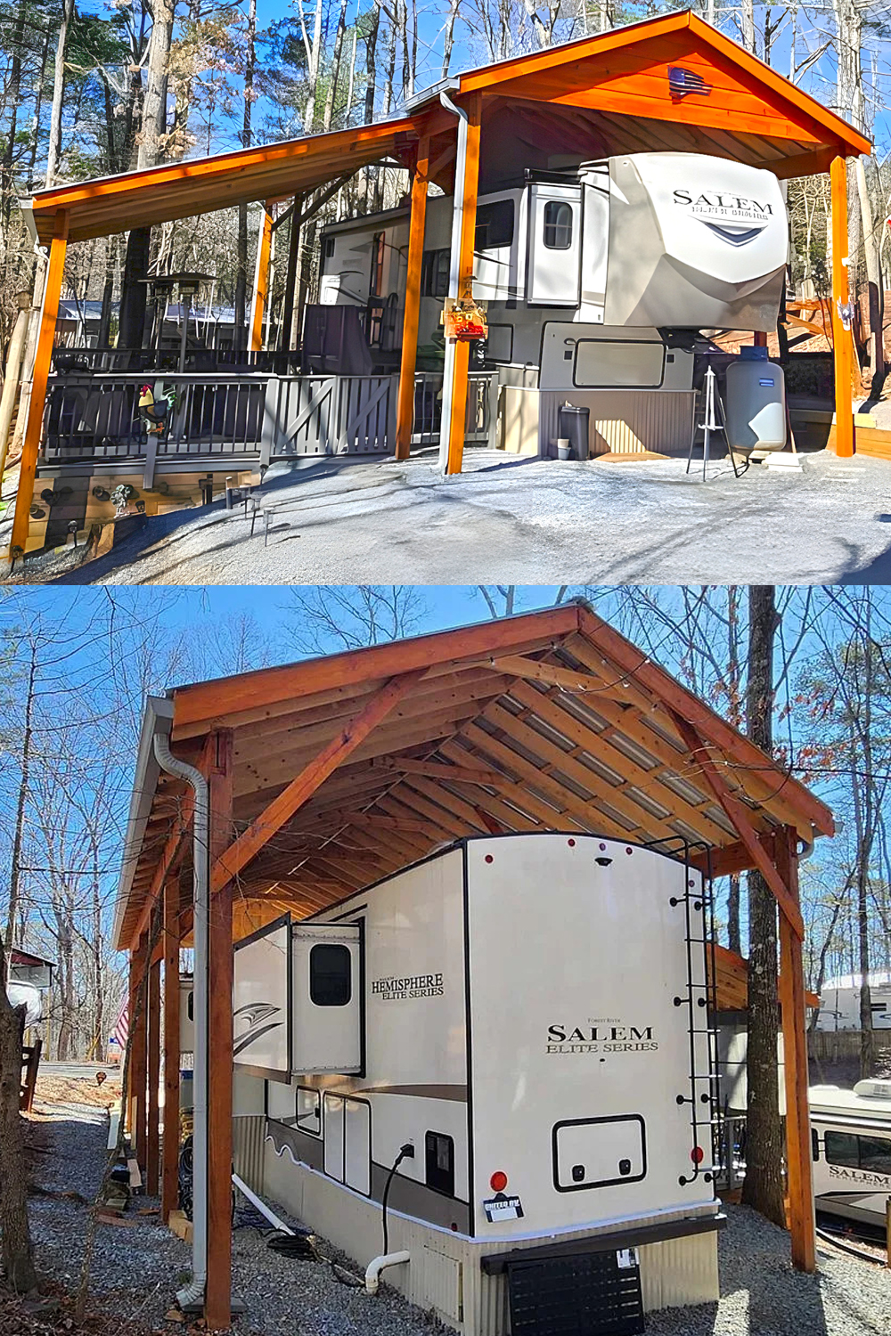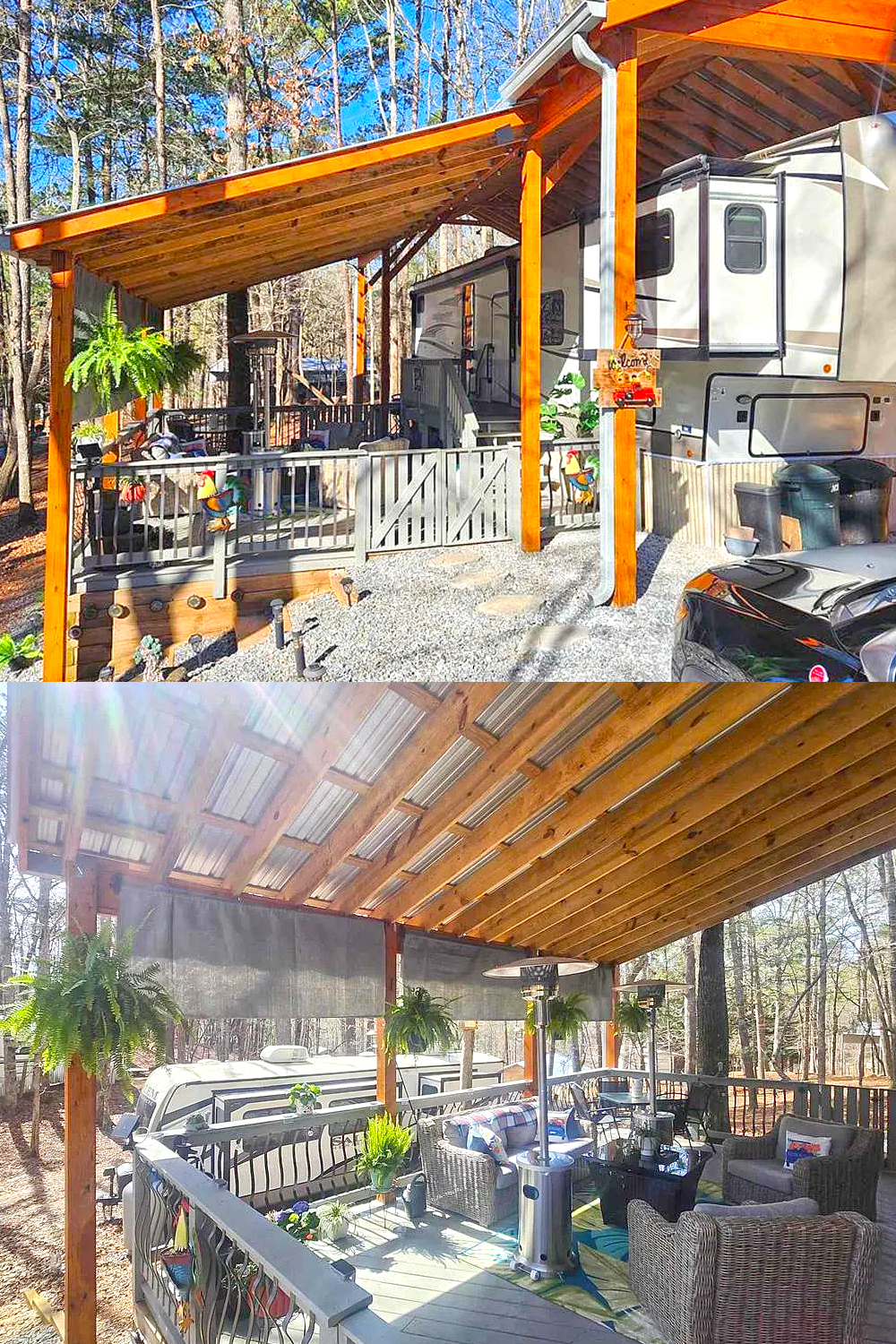- Build a covered deck. It adds outdoor living space and keeps your camper shaded.