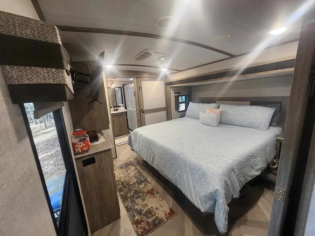 From the inviting porch to the cozy interior, it’s clear that every inch was designed with care. It’s more than a camper—it’s a retreat.
