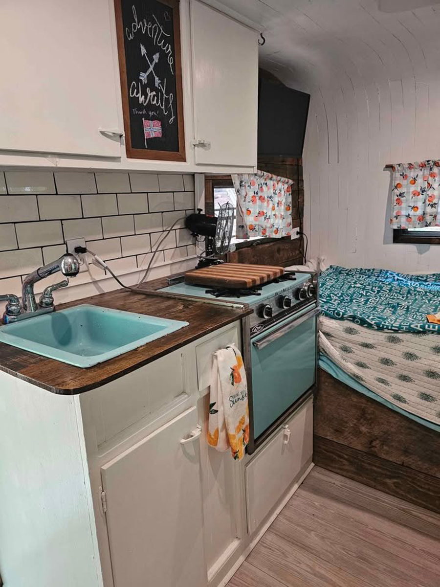 So if you ever spot a little white-and-turquoise trailer parked under the trees, take a peek inside. You just might find your happy place on wheels.