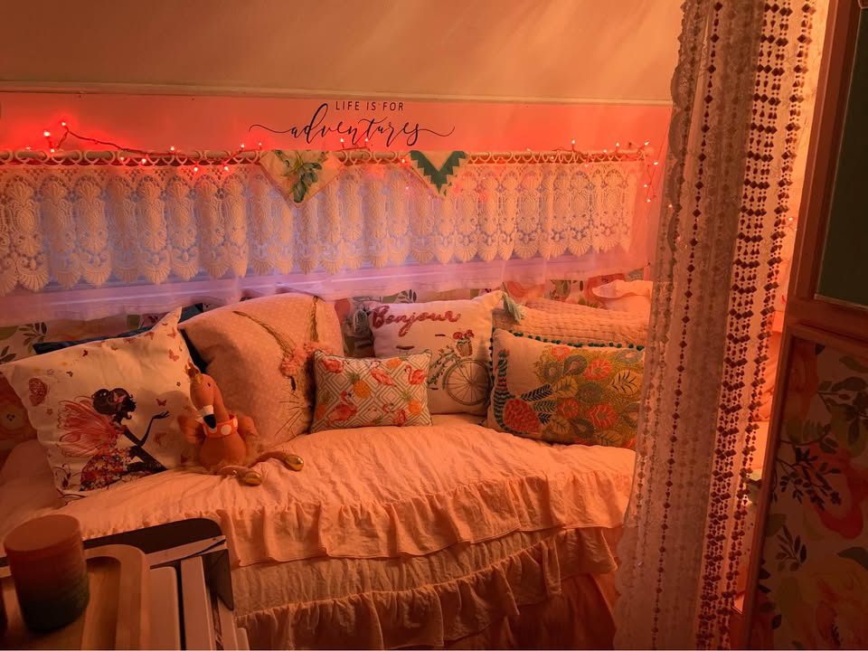 Wind chimes. Cute signs. Fairy silhouettes. Fun pillows. Painted decals. All these little touches create big personality. They make the caravan feel warm and loved.