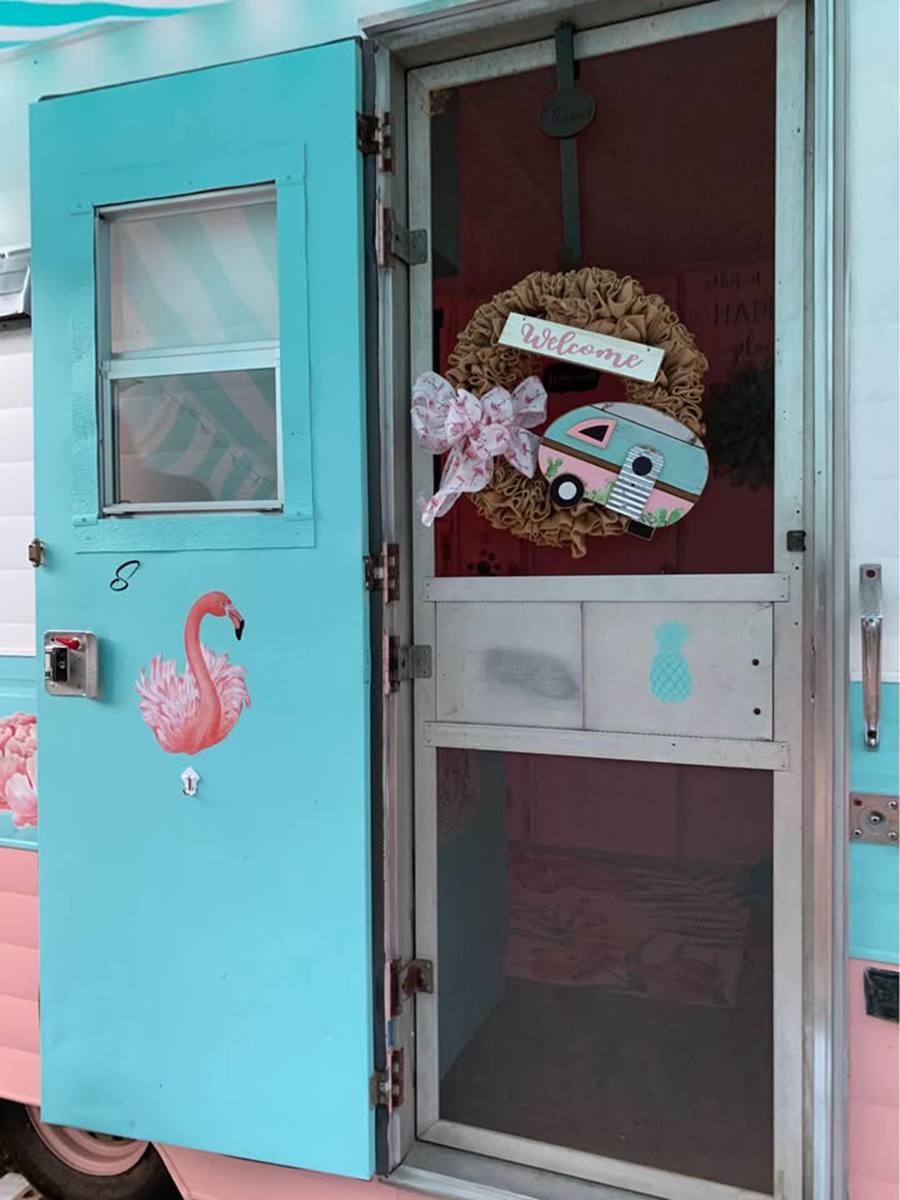 Lovely decals sit across the sides. You see flowers, flamingos, and watercolor petals. These small touches add personality. They make the caravan feel cute before you even step inside.