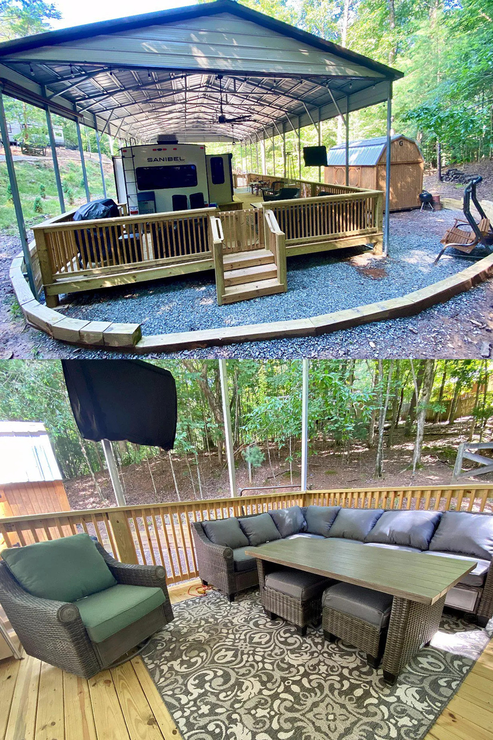 Think about this: You pull up to your camper after a long week. You step outside, take a deep breath, and smile. There’s a cool breeze. The trees are green and the birds are singing. Best of all, you have a big, beautiful outdoor living space that feels just like home.