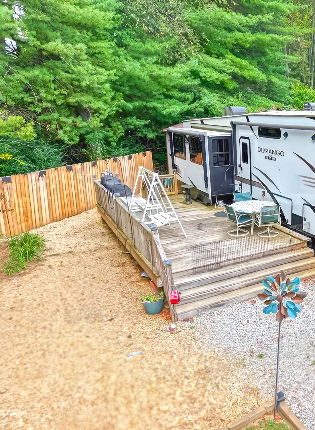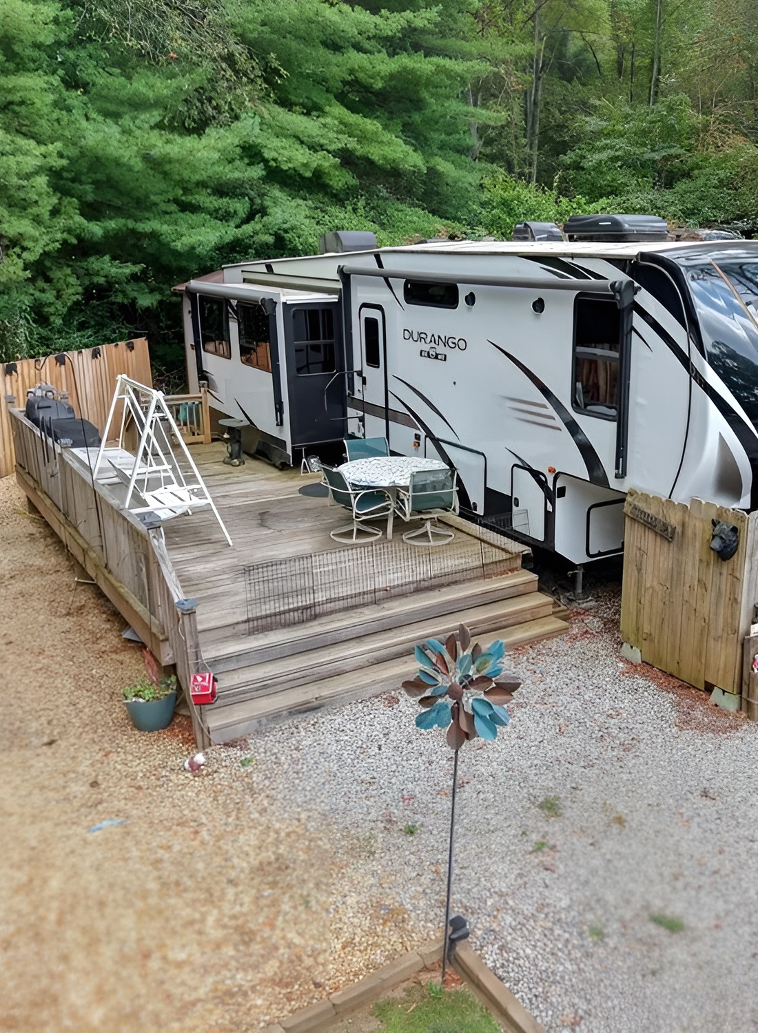A good RV deck should do three things. It should make entry easier. It should give you room to relax. And it should make the site feel like it has structure. This one does all three.
