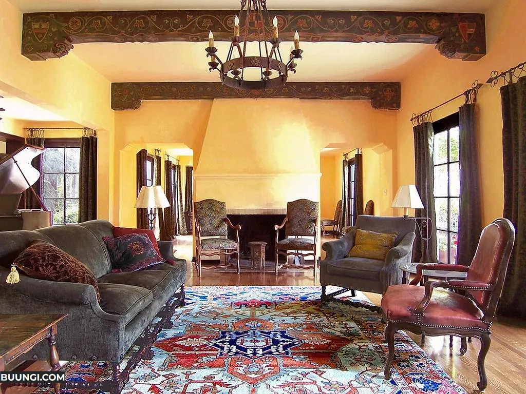 Plush sofas add comfort. Carved wood chairs feel like treasured heirlooms. Colorful rugs bring warmth and depth to the room.