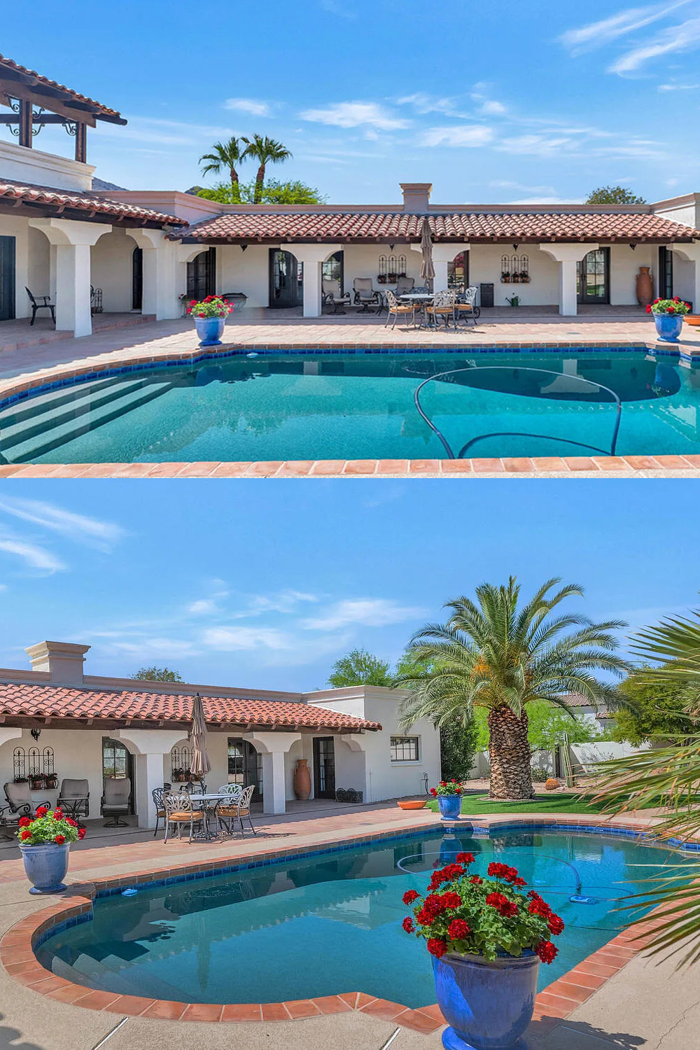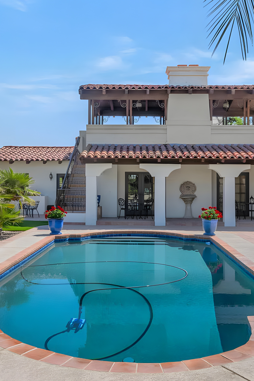 With its classic roof, glowing white walls, and lush courtyard, this hacienda is a dream brought to life. The blend of sun, shade, color, and texture feels just right. Every day brings new reasons to smile, whether you’re splashing in the pool, tending flowers, or sipping lemonade on the patio.