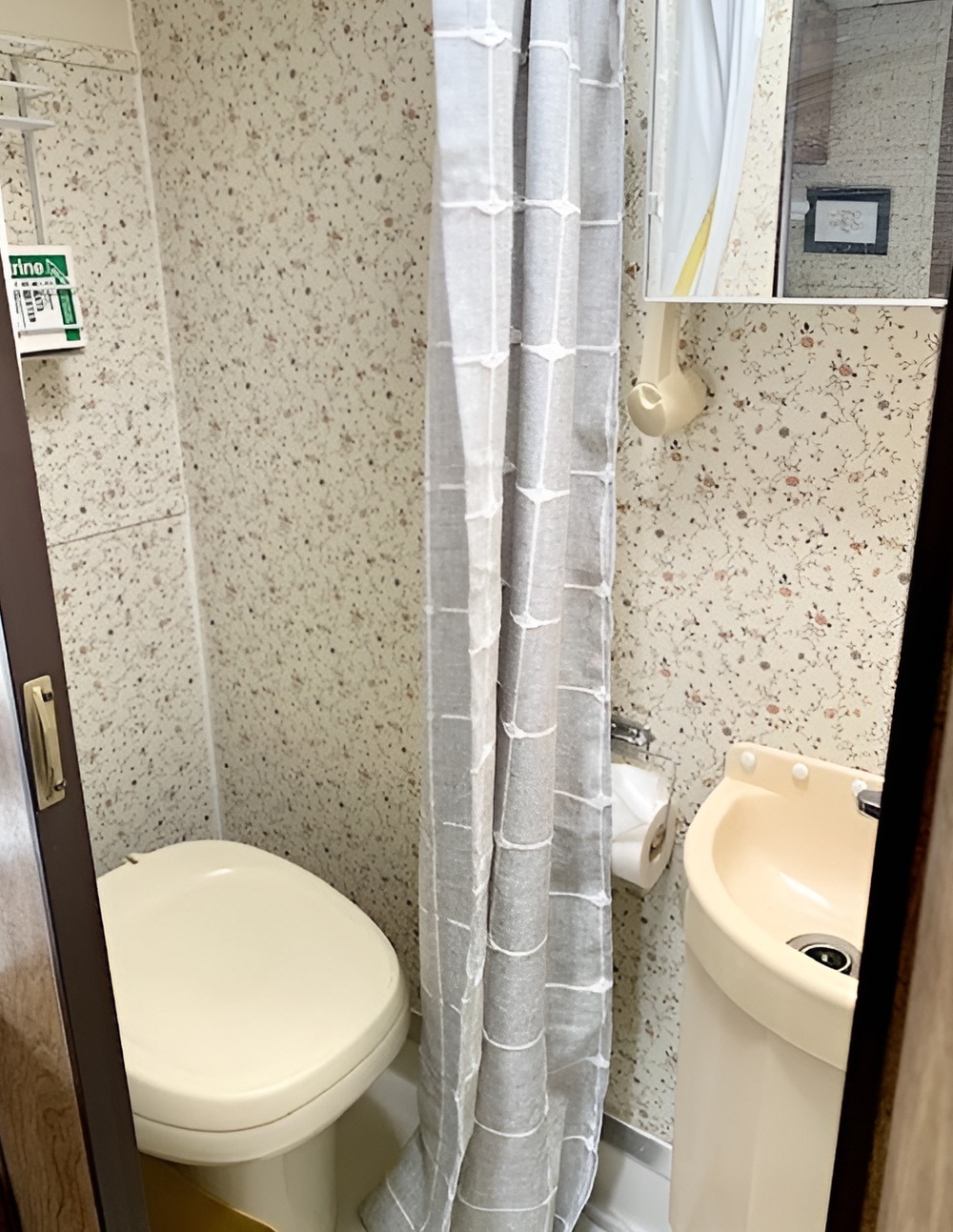 Bathrooms in older motorhomes often feel like an afterthought. This one does not. It is still very compact, of course, but the styling helps it feel cared for and pleasant.