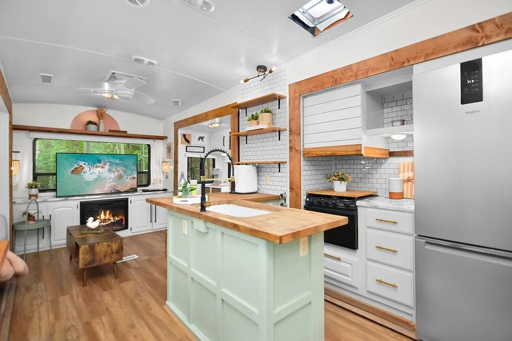 Think campers can’t feel like real homes? Think again. This remodeled 5th wheel shows how style and comfort can fit perfectly into a small space. With a bright kitchen, a cozy living room, a restful bedroom, and even a spa-like bathroom, this RV feels more like a cottage on wheels than a camper. Whether you dream of full-time RV life or just want a weekend escape, this makeover proves you don’t have to give up comfort to live small. Let’s step inside.