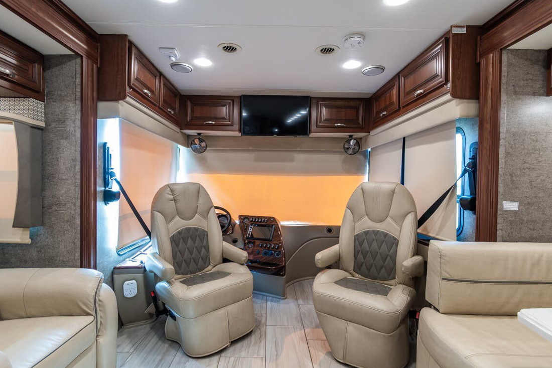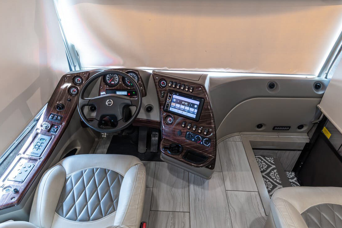 The Berkshire is easy to drive. The captain’s chairs are soft and supportive. You get a wide, clear view from the big windshield. Controls are simple and close by.