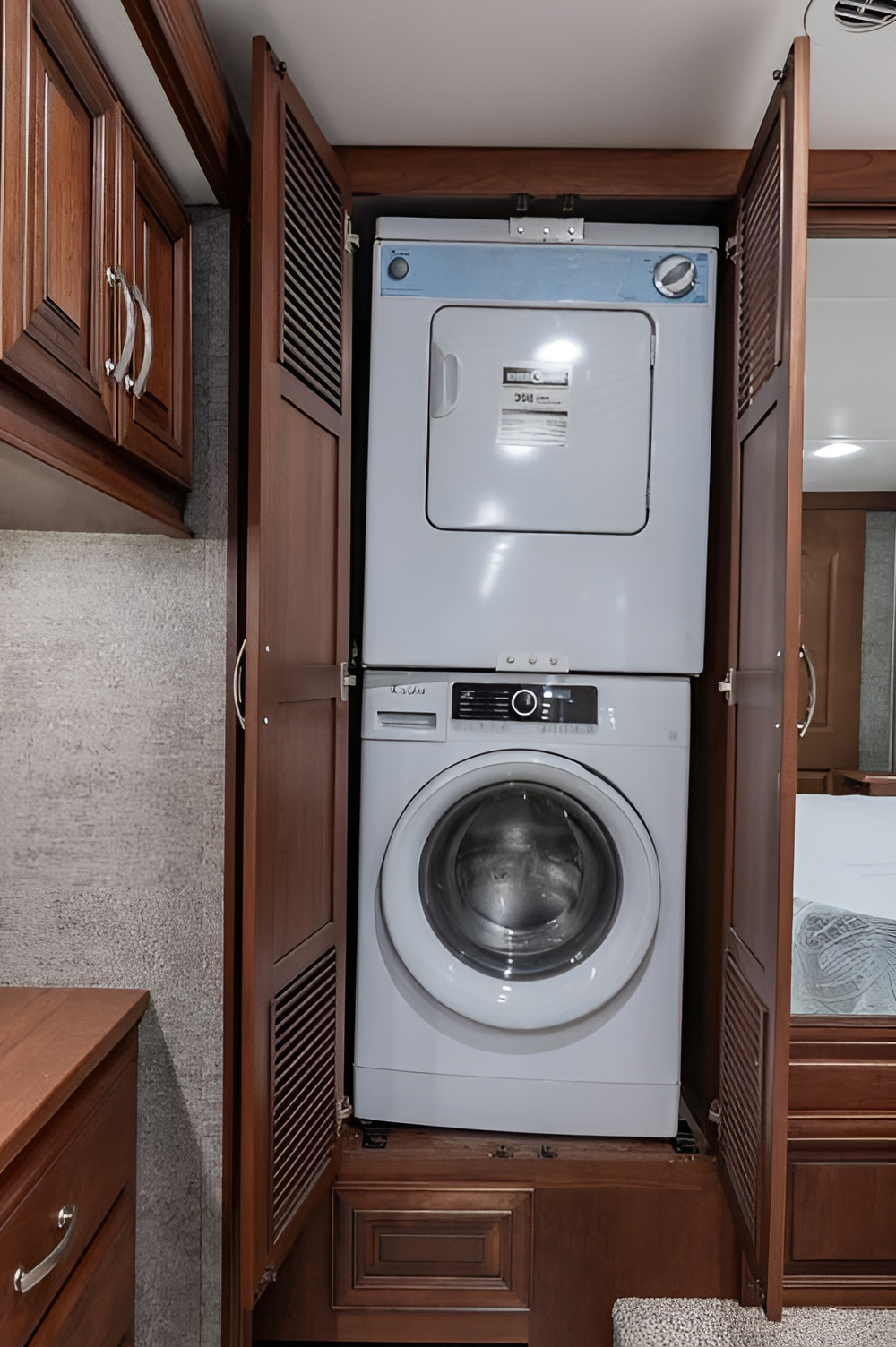You never need a laundromat. The Berkshire has its own washer and dryer. Both fit neatly in a cabinet. Wash and dry your clothes anytime you want.