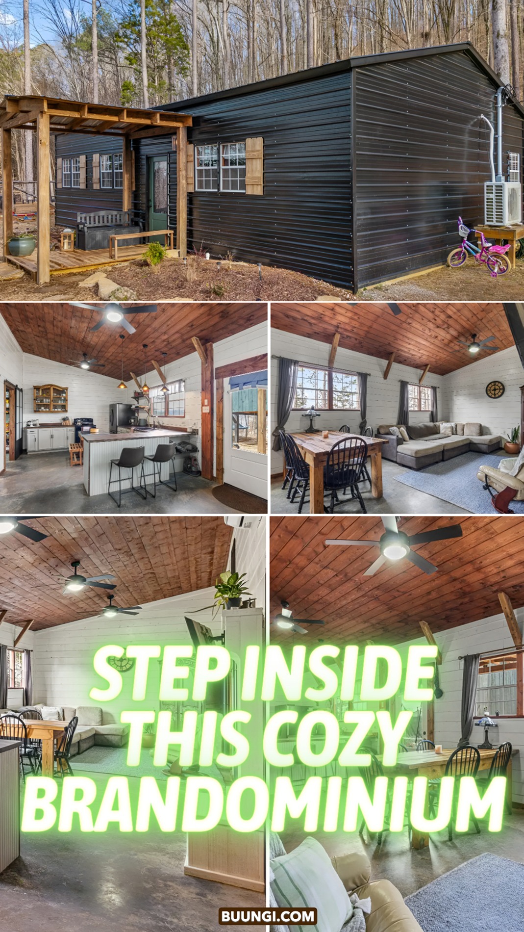 This black barndominium proves that simple design can still feel stunning. From the bold dark exterior to the warm wood ceiling and bright white walls inside, every detail creates a look that feels cozy, rustic, and easy to love. If you enjoy barndominium homes that mix strong materials with soft, welcoming style, this one is full of ideas worth saving.